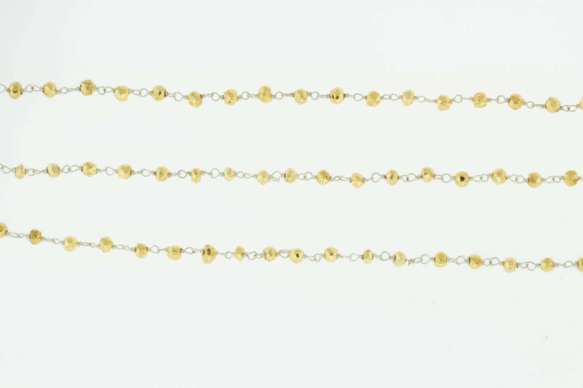 Gold Plated Pyrite 4mm Faceted Rondelles Rosary Chain Sterling Silver Wire Wrap Chain by the Foot