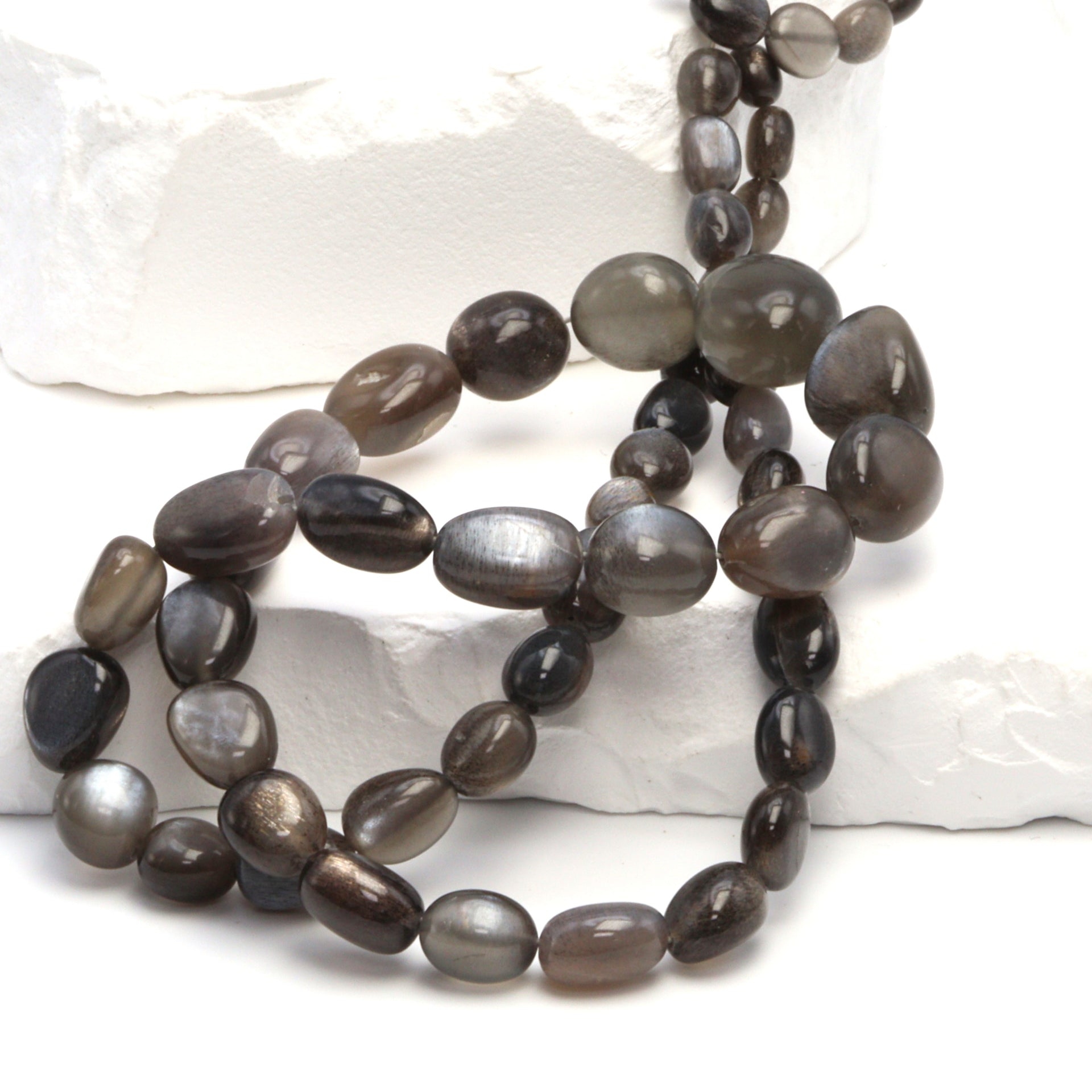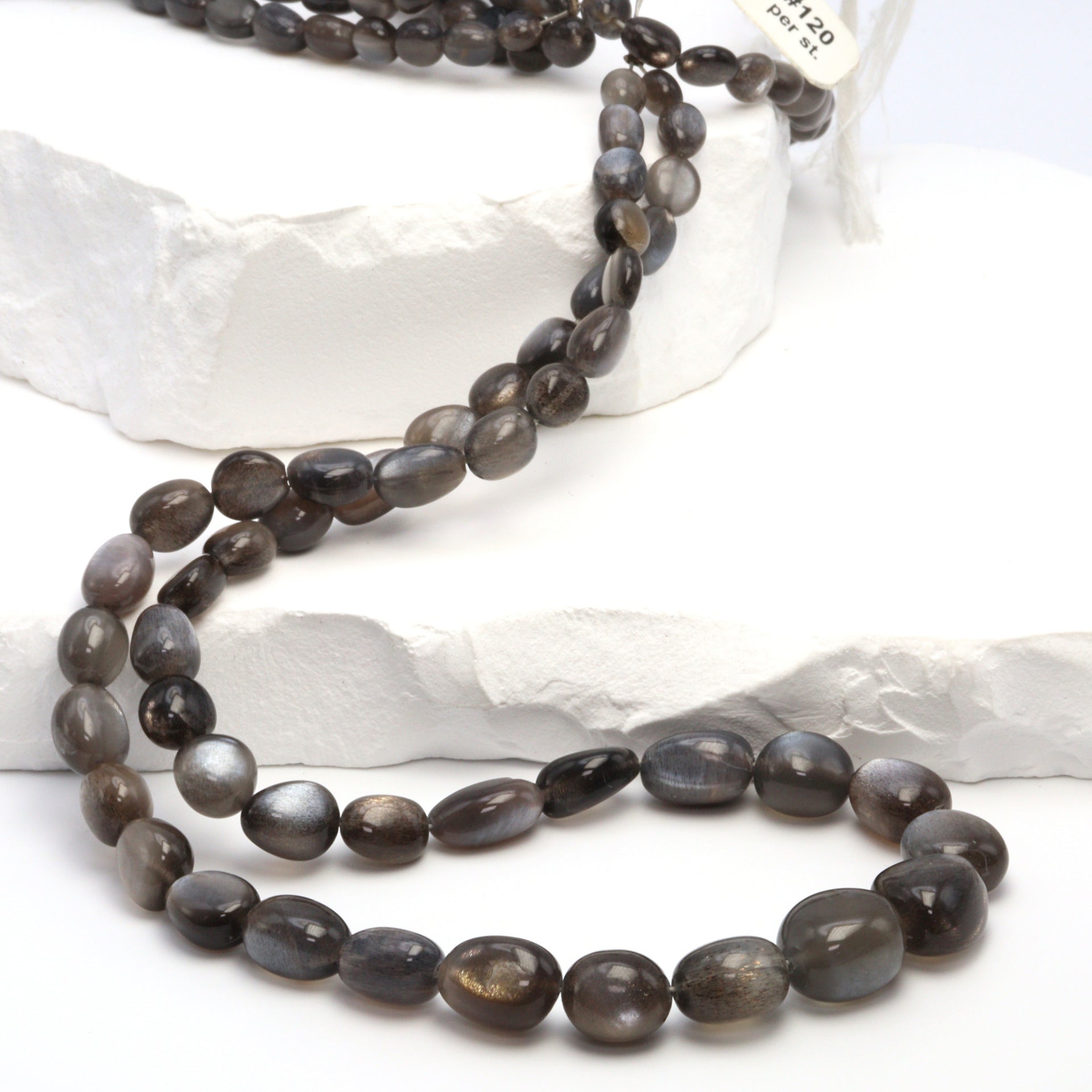 Discover the enchanting allure of our 16" Full Bead Strand of Gold Shine Gray Moonstone Smooth Nuggets. Each bead, meticulously crafted to a size of 6x4mm, exudes a unique gold shine that beautifully complements the gray moonstone. These smooth nugget-shaped beads are perfect for creating exquisite jewelry pieces that stand out. As a gemstone wholesaler, we ensure that our beads are of the highest quality, offering a captivating blend of luxury and durability. Ideal for jewelry designers and stores, these gold shine gray moonstone beads add a touch of elegance and sophistication to any design. Elevate your jewelry collection with the mesmerizing charm of these gray moonstone beads.