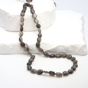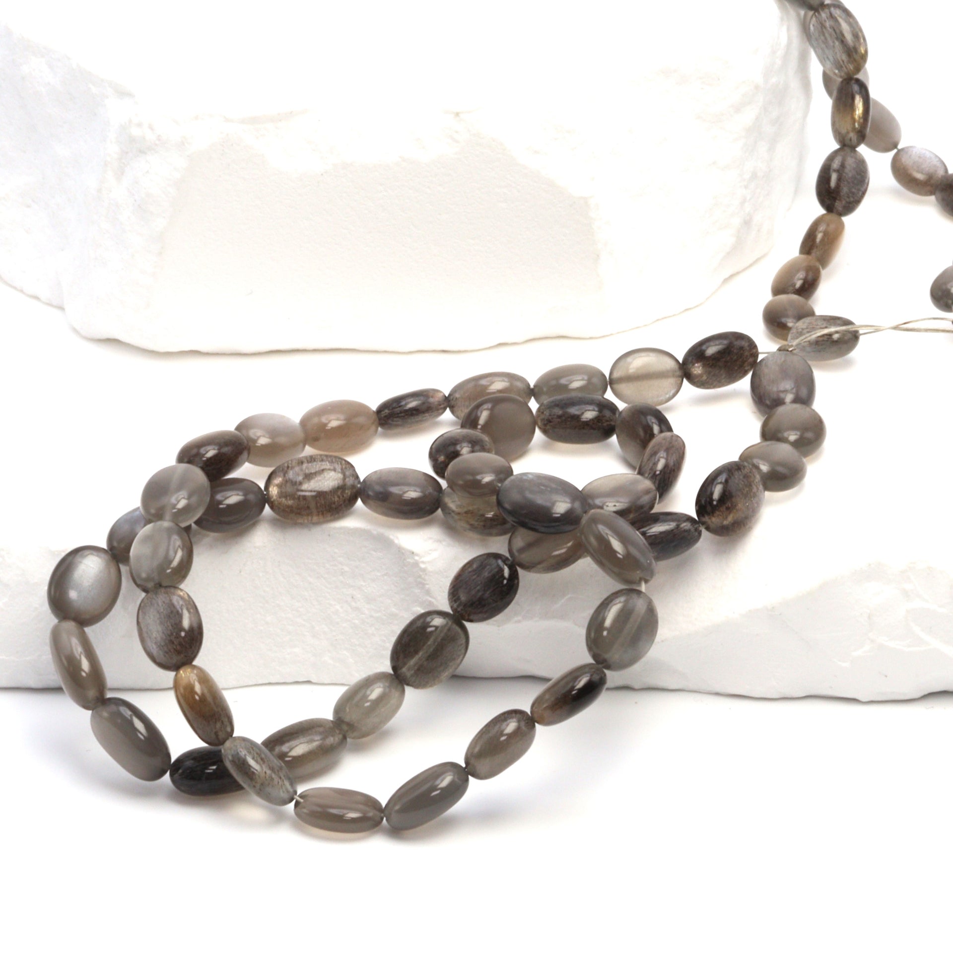 Discover the enchanting allure of our 16" Full Bead Strand of Gold Shine Gray Moonstone Smooth Ovals. Each bead, meticulously crafted to a size of 8x6mm, showcases a unique blend of gold shine and gray hues, reminiscent of a moonlit night. These gemstone beads are perfect for jewelry designers and stores seeking high-quality, wholesale gemstones. The smooth oval shape of each bead adds a touch of sophistication and elegance to any jewelry piece. Whether you're creating a stunning necklace or a charming bracelet, these Gold Shine Gray Moonstone beads will undoubtedly enhance your designs with their captivating beauty and superior quality.