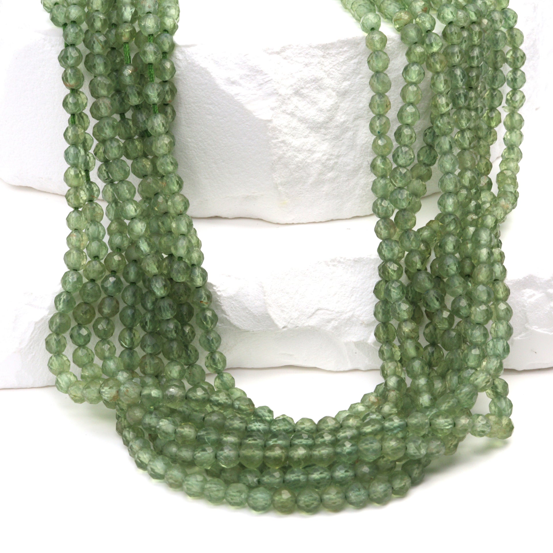 Green Apatite 3mm Faceted Rounds Bead Strand