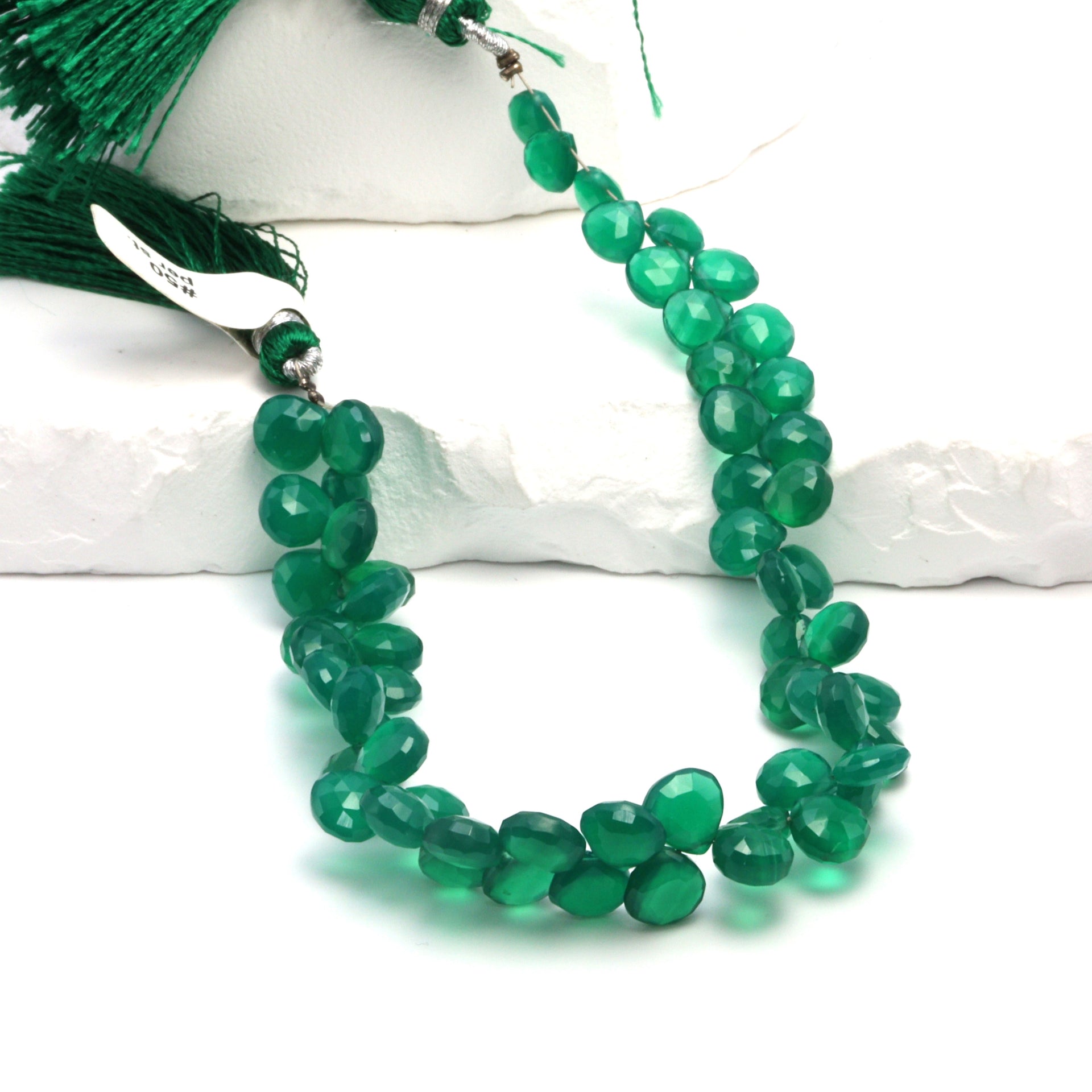 Green Onyx 6mm Faceted Heart Shaped Briolettes Bead Strand