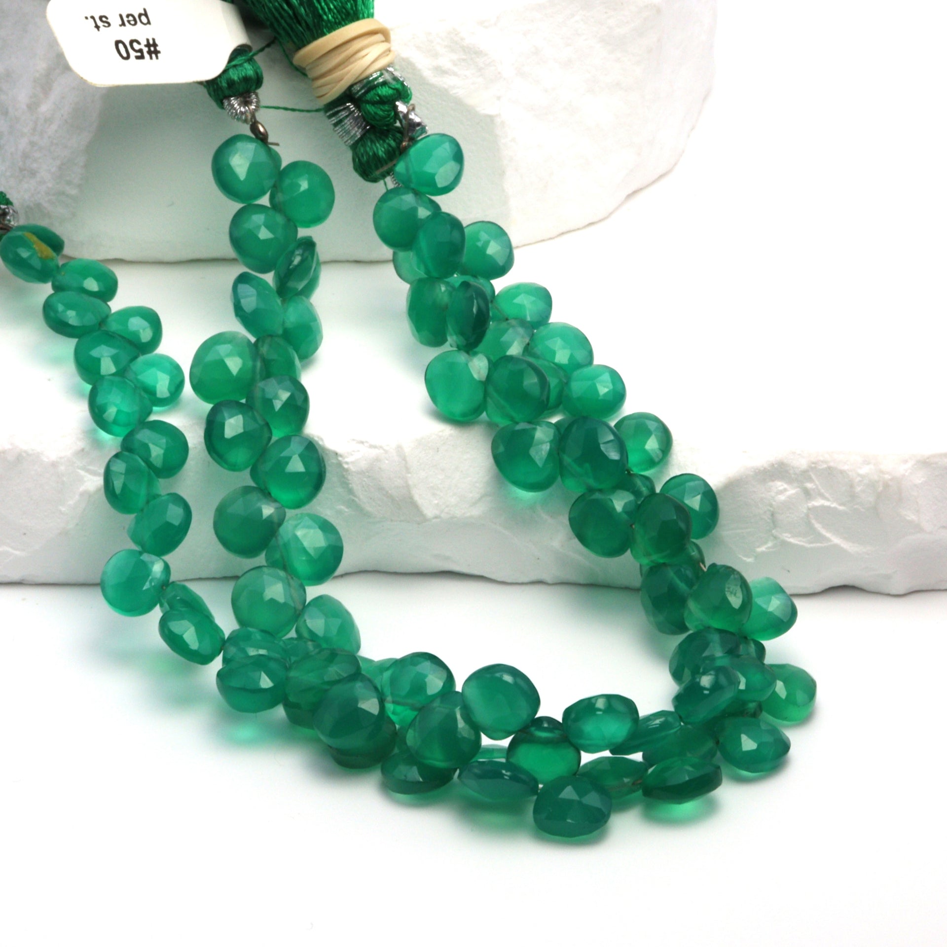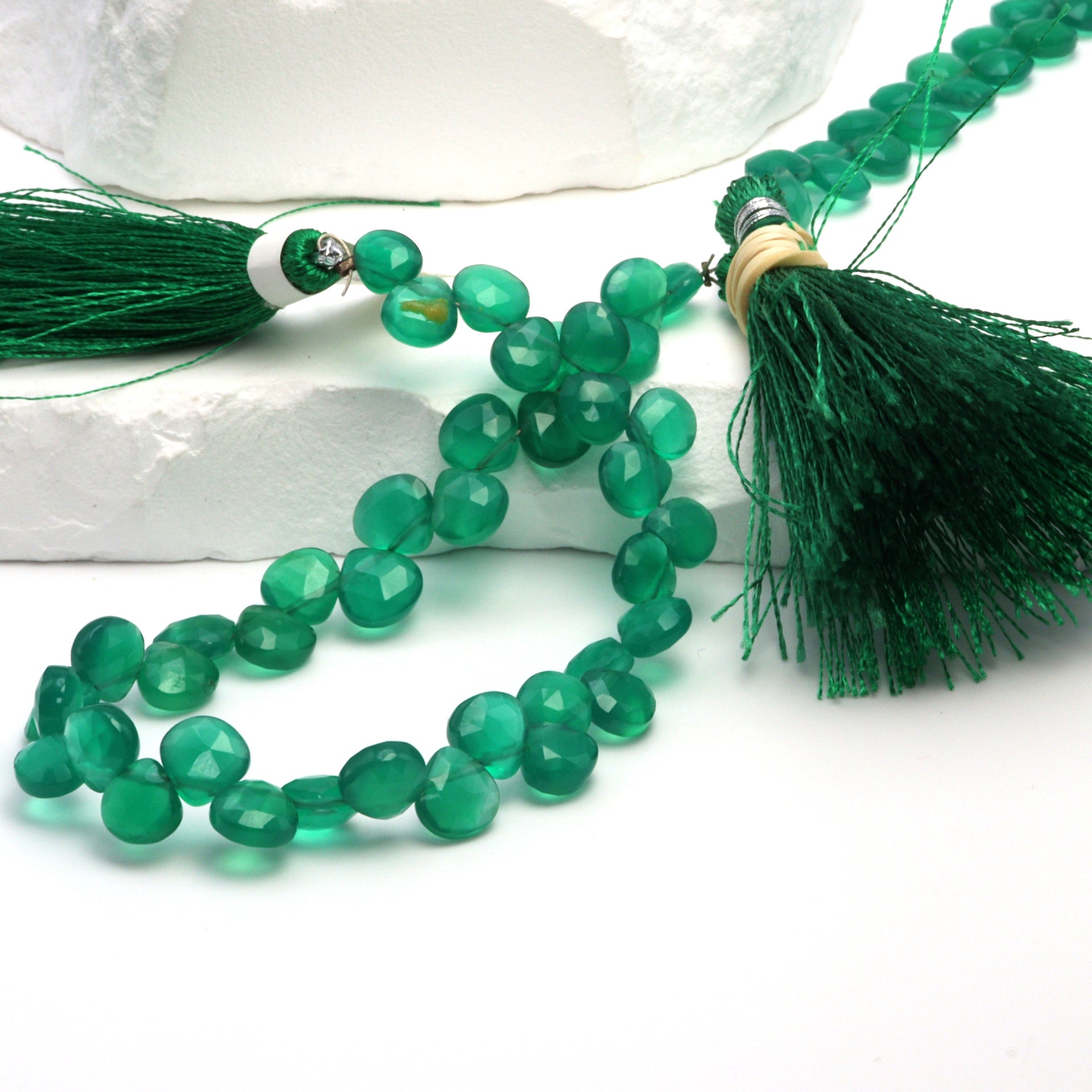 Green Onyx 7mm Faceted Heart Shaped Briolettes Bead Strand