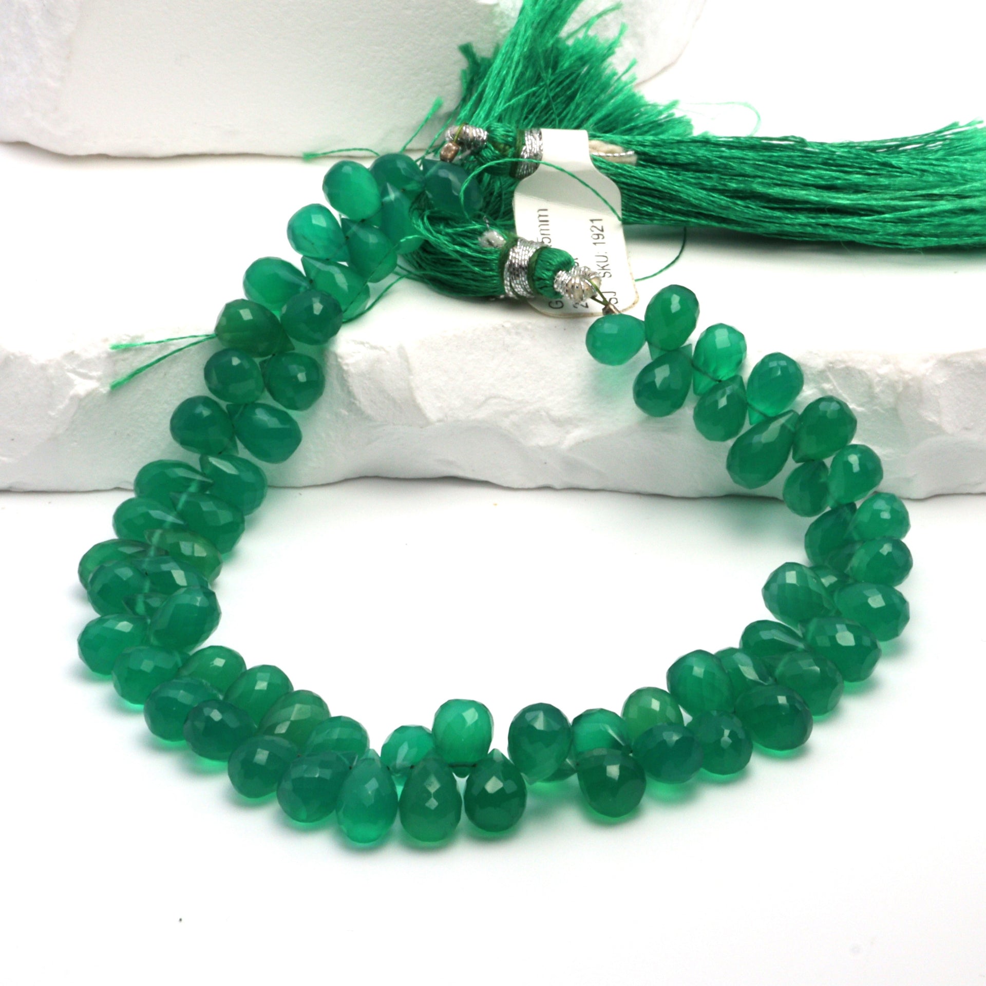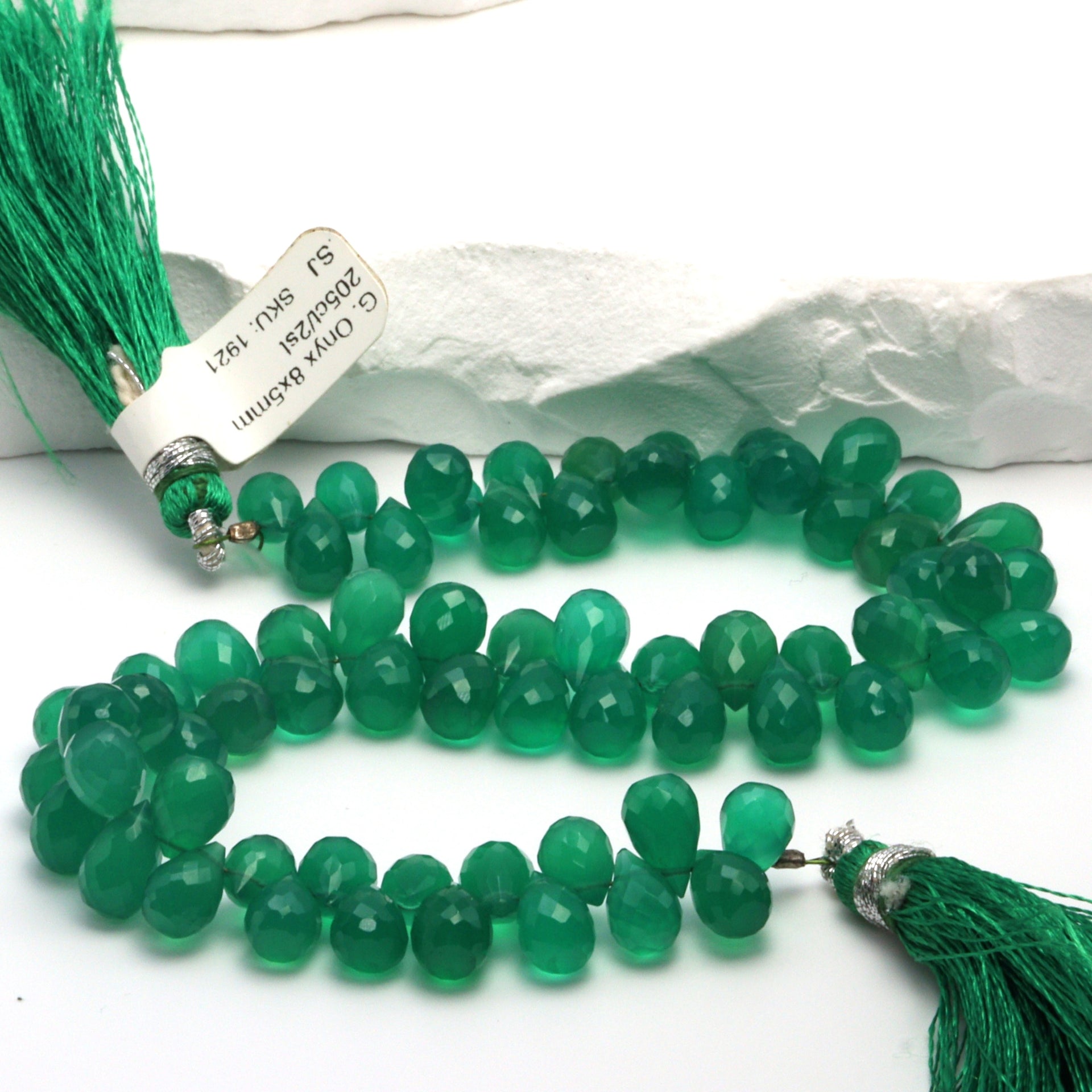 Green Onyx 8x5mm Faceted Teardrop Briolettes Bead Strand