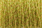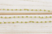 Green Peridot 3mm Faceted Rounds Rosary Chain Sterling Silver with Gold Plating Wire Wrap Chain by the Foot