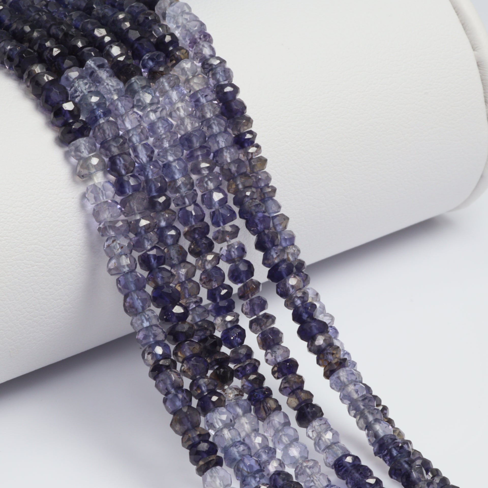 Ombre Blue Iolite 3mm Faceted Rondelles Bead Strand