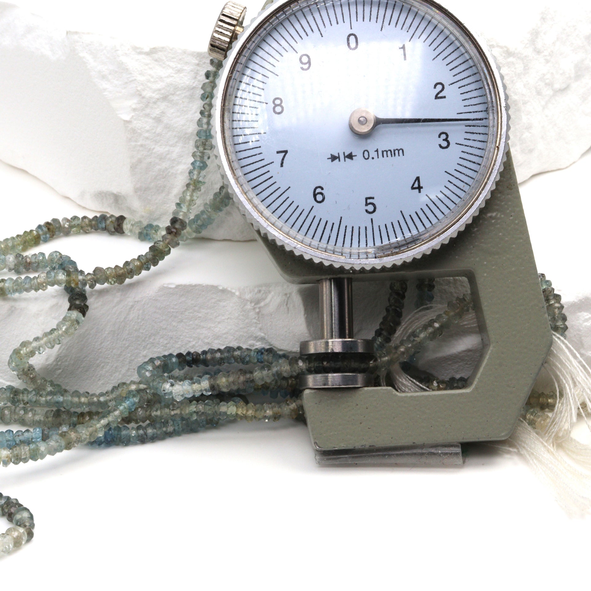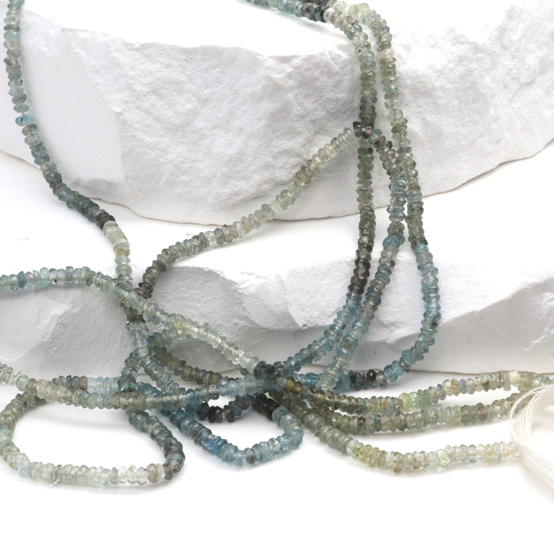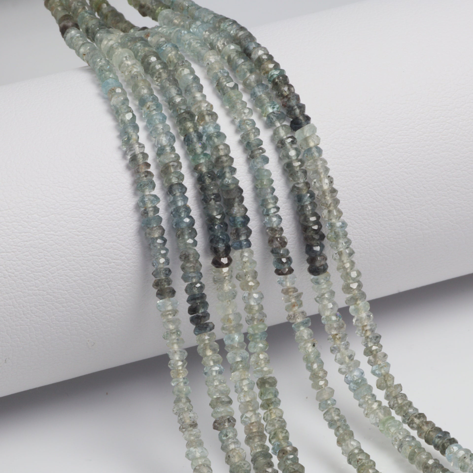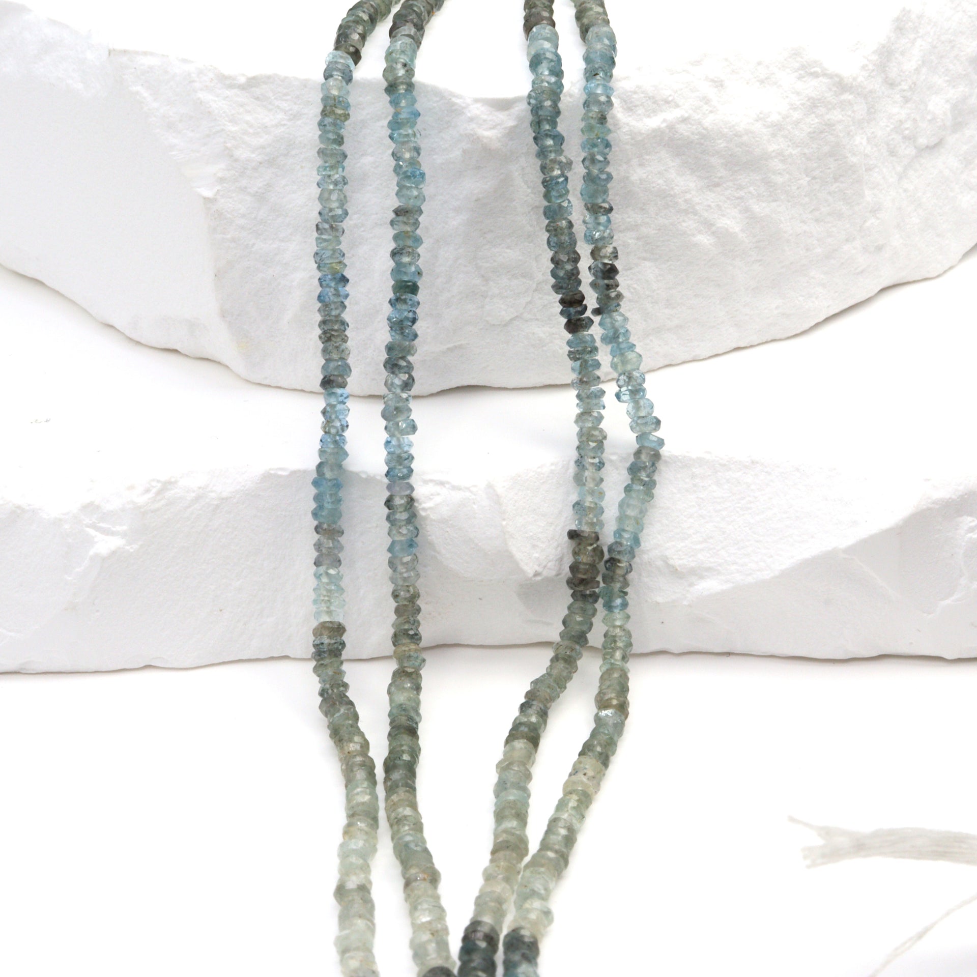 Discover the enchanting allure of our 13" Full Bead Strand of Moss Aquamarine Faceted Rondelles. These exquisite 3mm beads are meticulously crafted, showcasing the unique beauty of Moss Aquamarine. Each bead is faceted to perfection, reflecting light in a captivating manner that highlights the stone's natural variations of mossy green and blue hues. Ideal for jewelry designers and stores, these gemstone beads offer a unique blend of elegance and earthy charm. They are perfect for creating stunning necklaces, bracelets, and earrings that will captivate your customers. As a gemstone wholesaler, we ensure high-quality and ethically sourced products. Elevate your jewelry designs with the mesmerizing beauty of our Moss Aquamarine Faceted Rondelles.