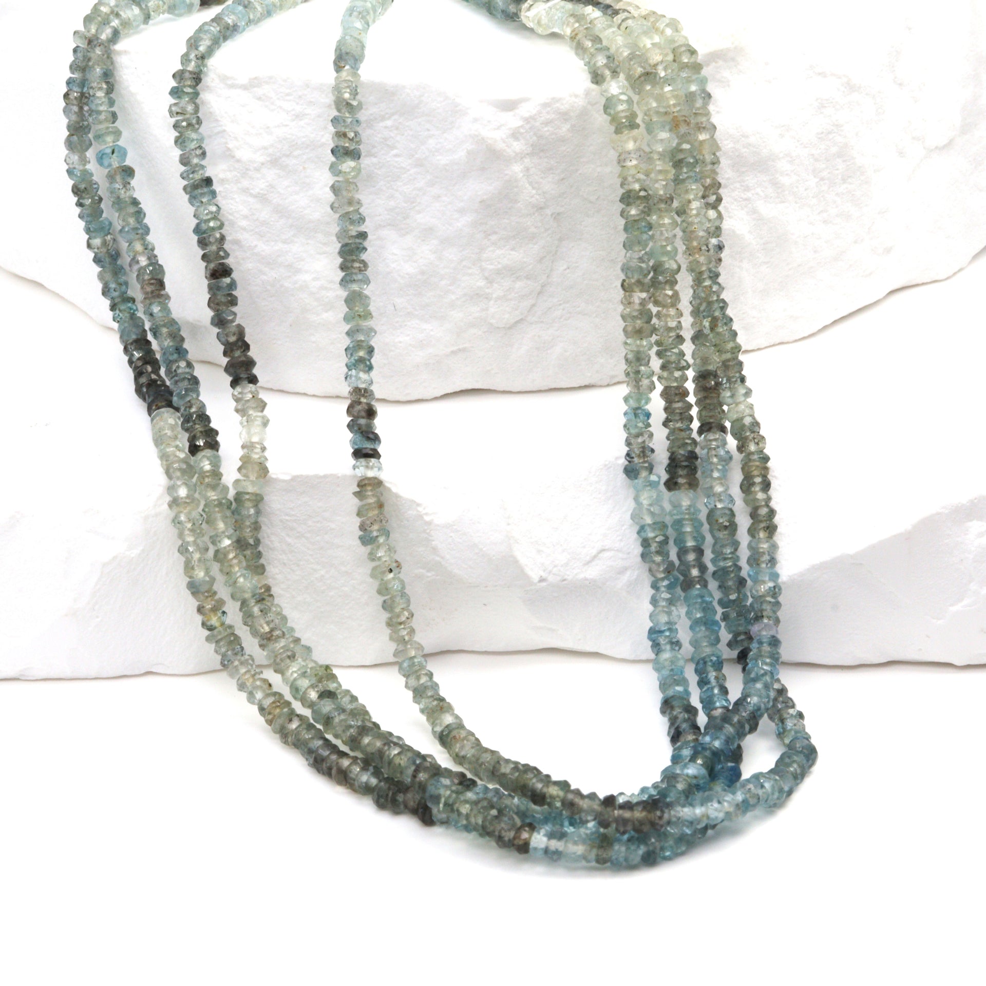 Moss Aquamarine 3mm Hand Faceted Rondelles Bead Strand