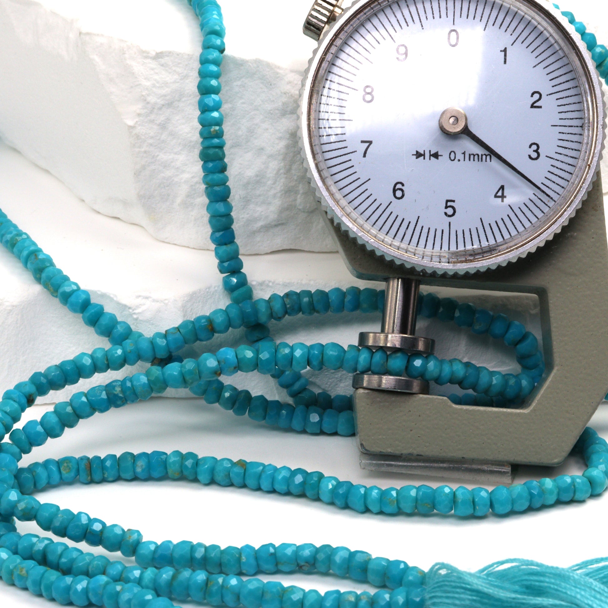 Natural Blue-Green Turquoise 3.5mm Hand Faceted Rondelles Bead Strand