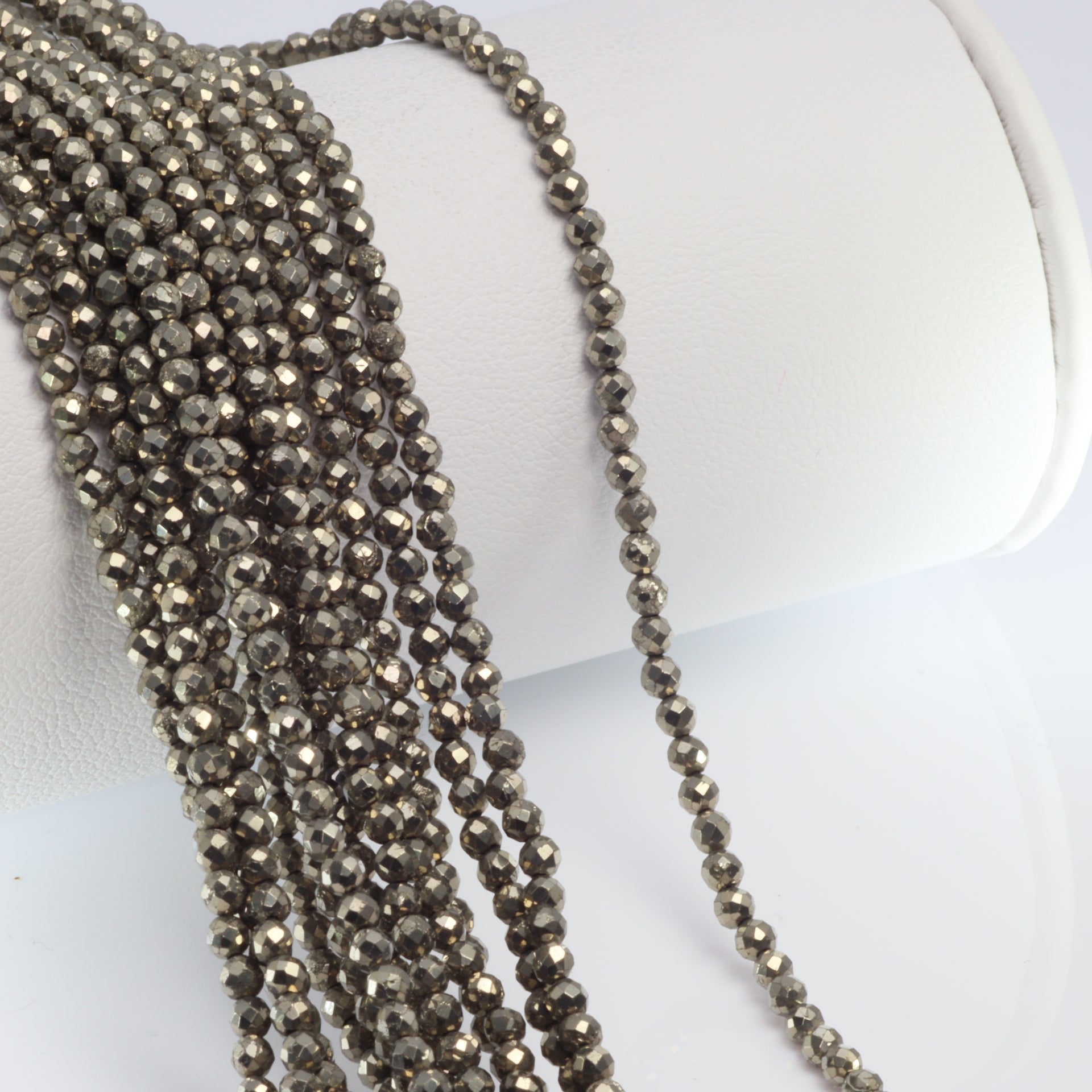Natural Pyrite 2.5mm Faceted Rounds Bead Strand