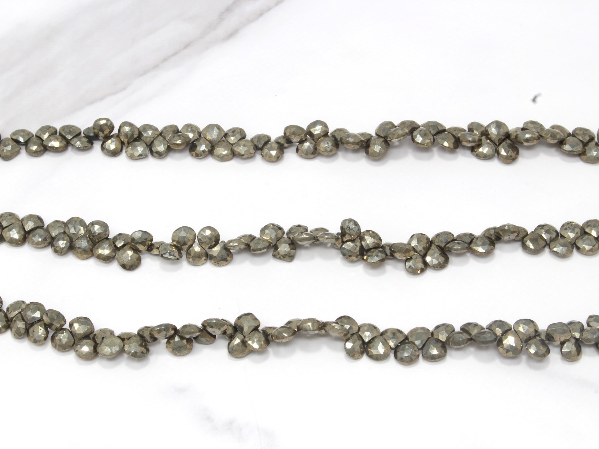 Natural Pyrite 6mm Faceted Heart Shaped Briolettes Bead Strand