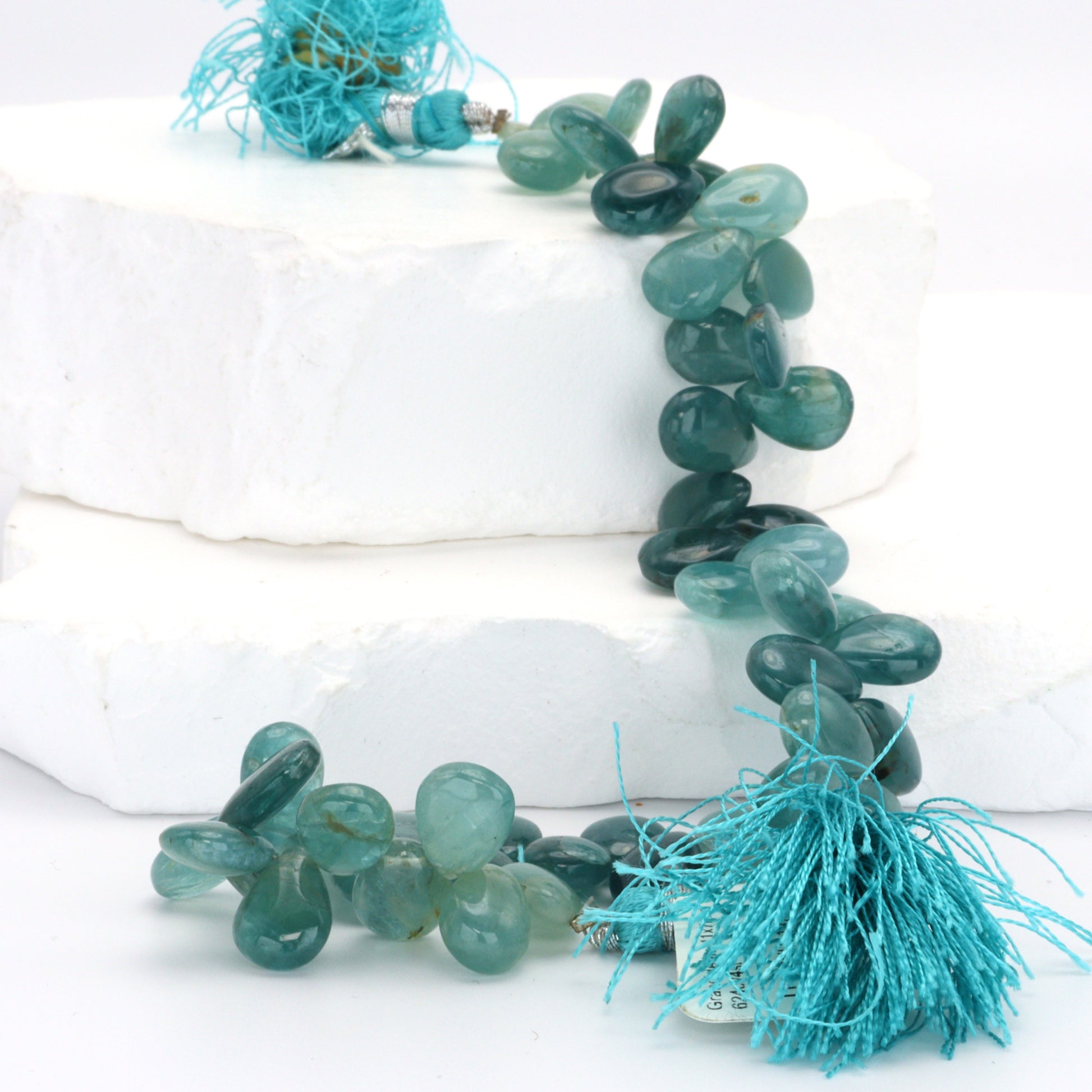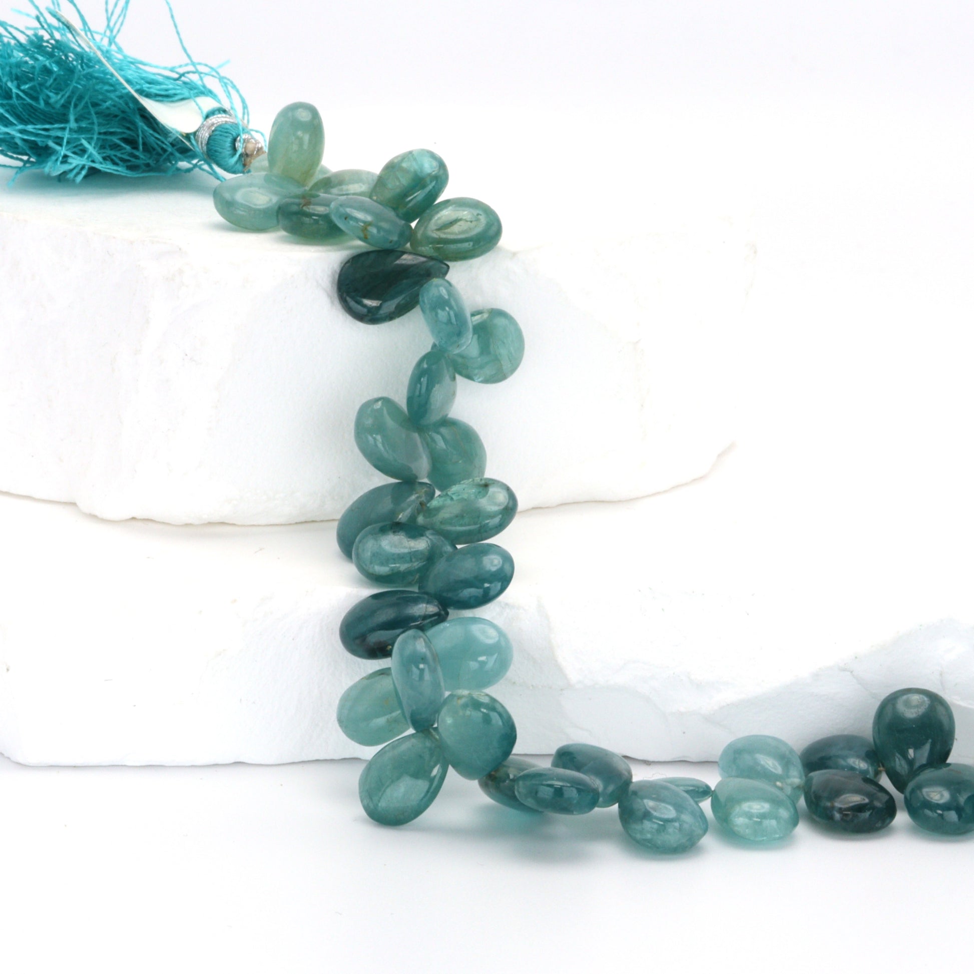 Discover the enchanting allure of our 8" Full Bead Strand of Ombre Blue Grandiderite Smooth Pear Shaped Briolettes. Each bead, measuring 11x7mm, is meticulously crafted to showcase the captivating ombre blue hues of the rare Grandiderite gemstone. These smooth, pear-shaped briolettes are perfect for creating unique, high-end jewelry pieces. As a gemstone wholesaler, we provide these exquisite beads in strands, making them an ideal choice for jewelry designers and stores seeking quality and elegance. The mesmerizing gradient of blue in these Grandiderite beads will undoubtedly add a touch of sophistication and charm to any jewelry design.