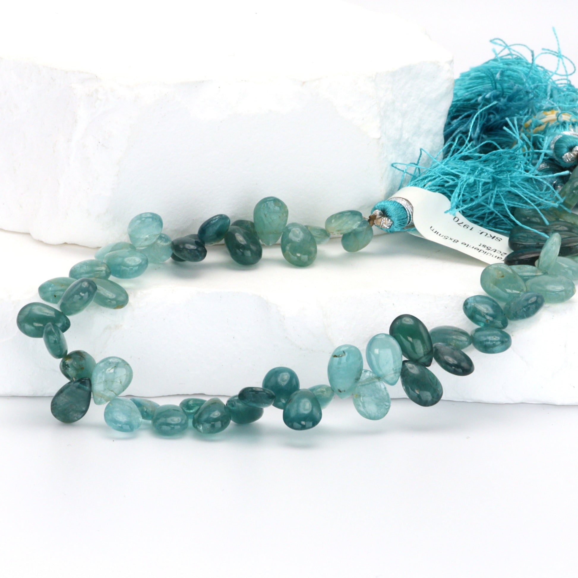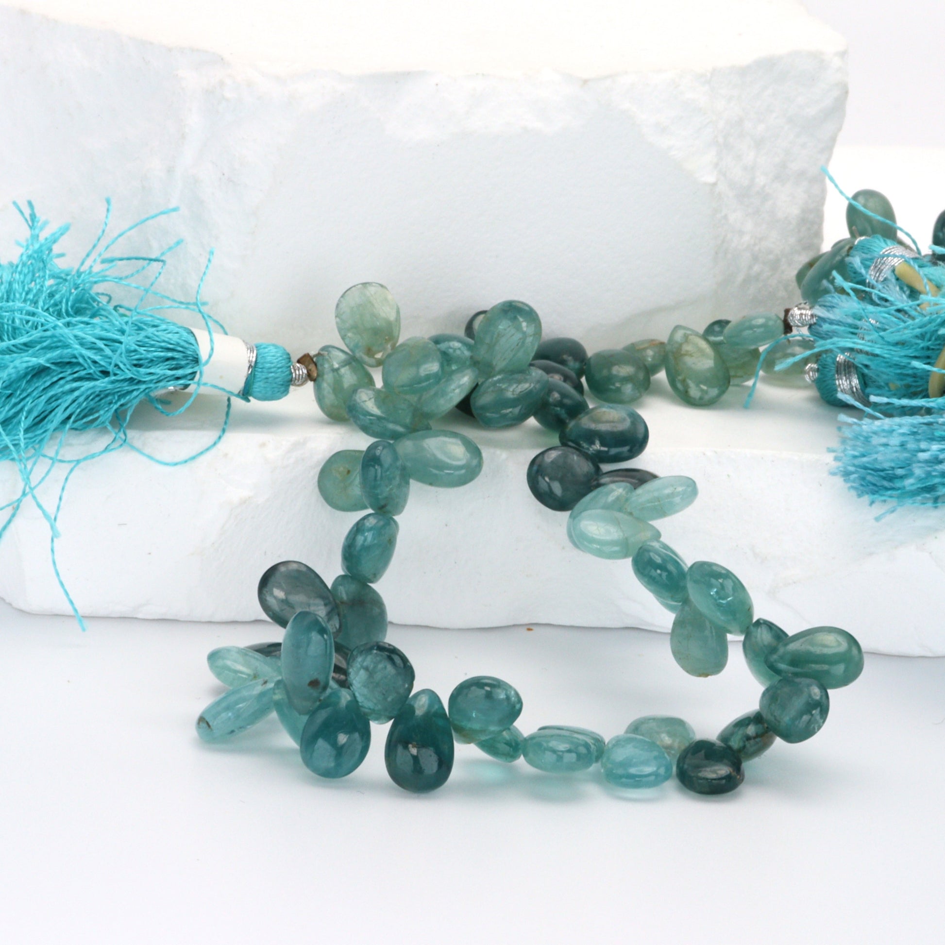 Discover the enchanting allure of our 8" Full Bead Strand of Ombre Blue Grandiderite Smooth Pear Shaped Briolettes. Each bead, meticulously crafted to a size of 8x5mm, showcases a captivating gradient of blue hues, reminiscent of the deep ocean. These gemstone beads are perfect for jewelry designers and stores seeking high-quality, unique materials. The smooth pear-shaped briolettes are not only visually stunning but also versatile, making them ideal for creating various types of jewelry. The grandiderite beads are wholesaled in strands, ensuring you have ample supply for your creative needs. Elevate your jewelry designs with the mesmerizing beauty of our ombre blue grandiderite beads.