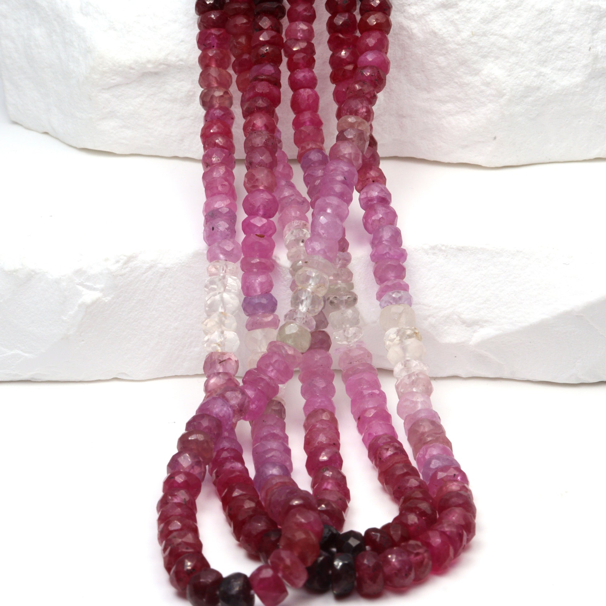 Ombre Red and Pink Ruby 3.5mm - 4.5mm Hand Faceted Rondelles Bead Strand