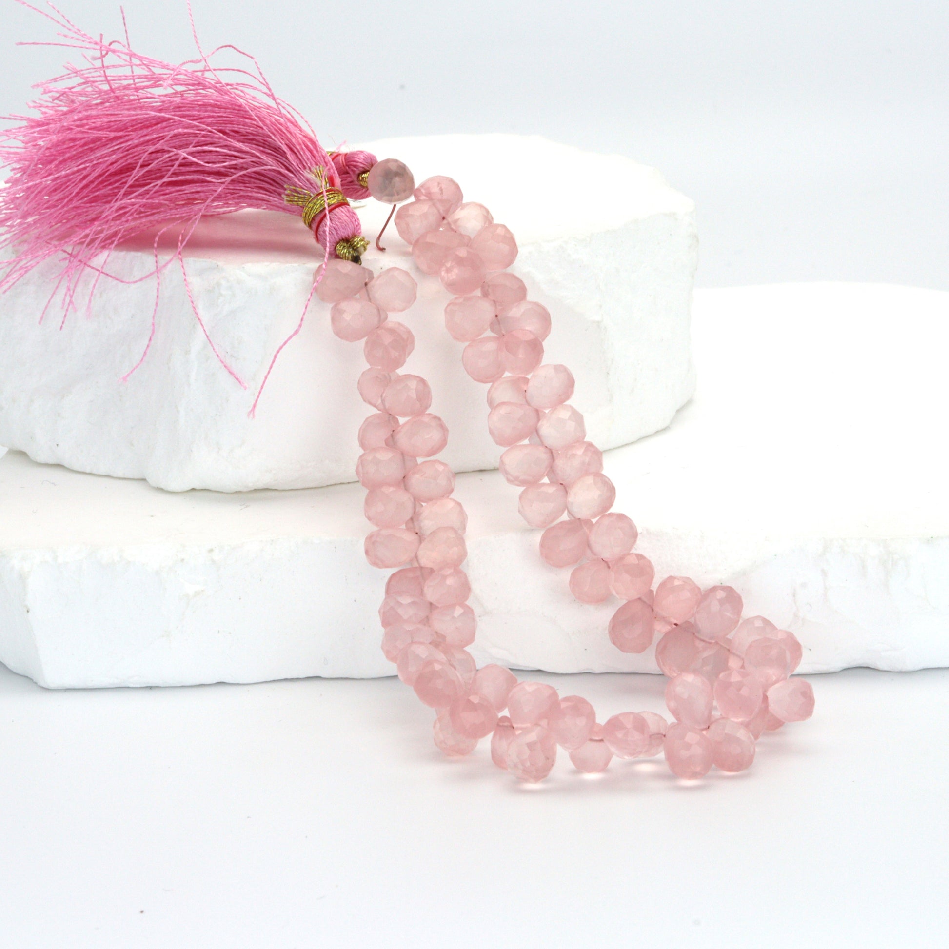 Pink Rose Quartz 7x5mm Faceted Teardrop Briolettes