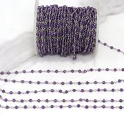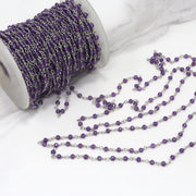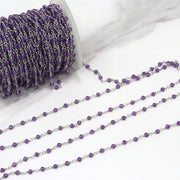 Purple Amethyst 2.5mm Faceted Rounds Rosary Chain Sterling Silver Wire Wrap Chain by the Foot