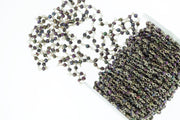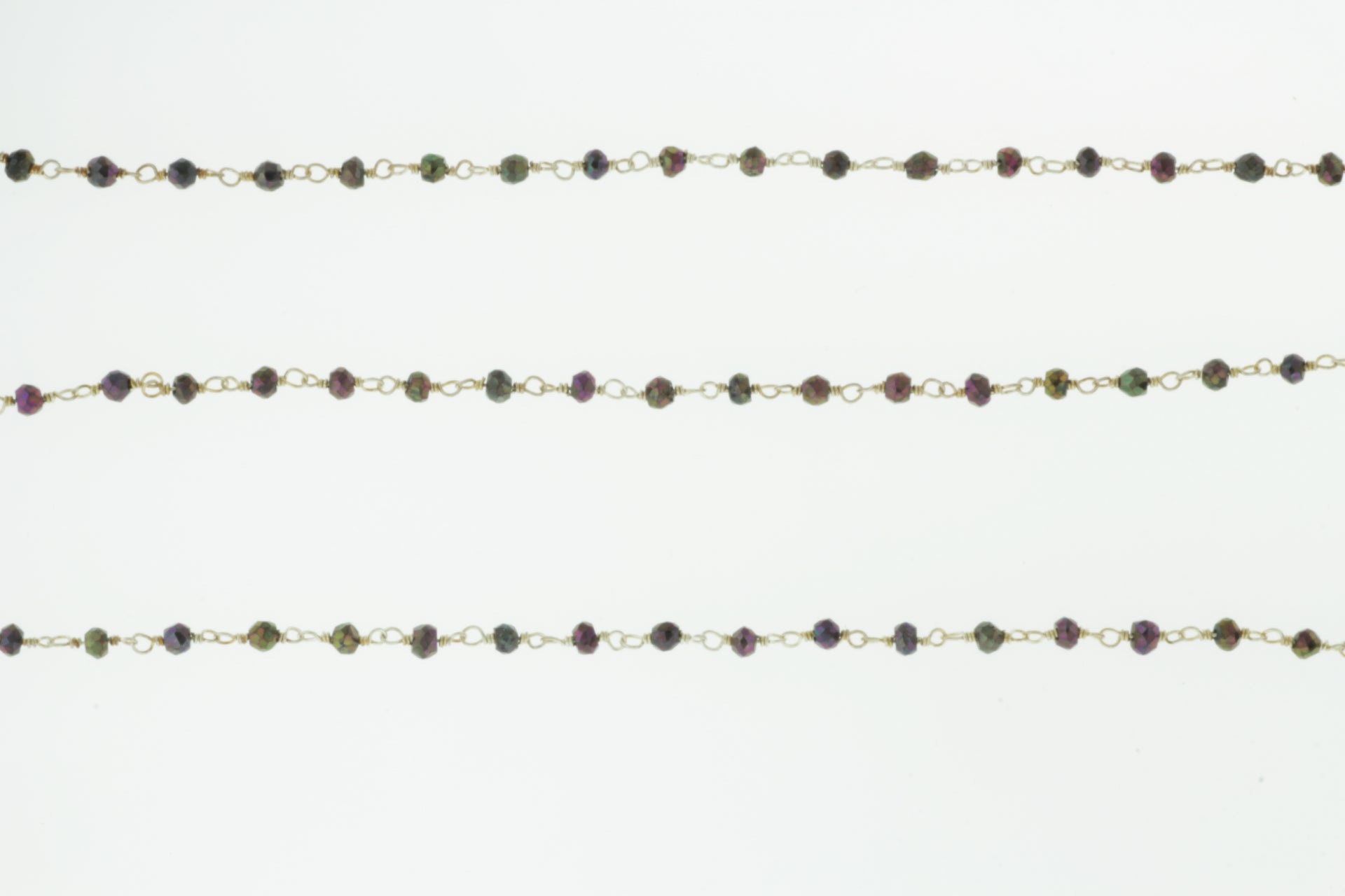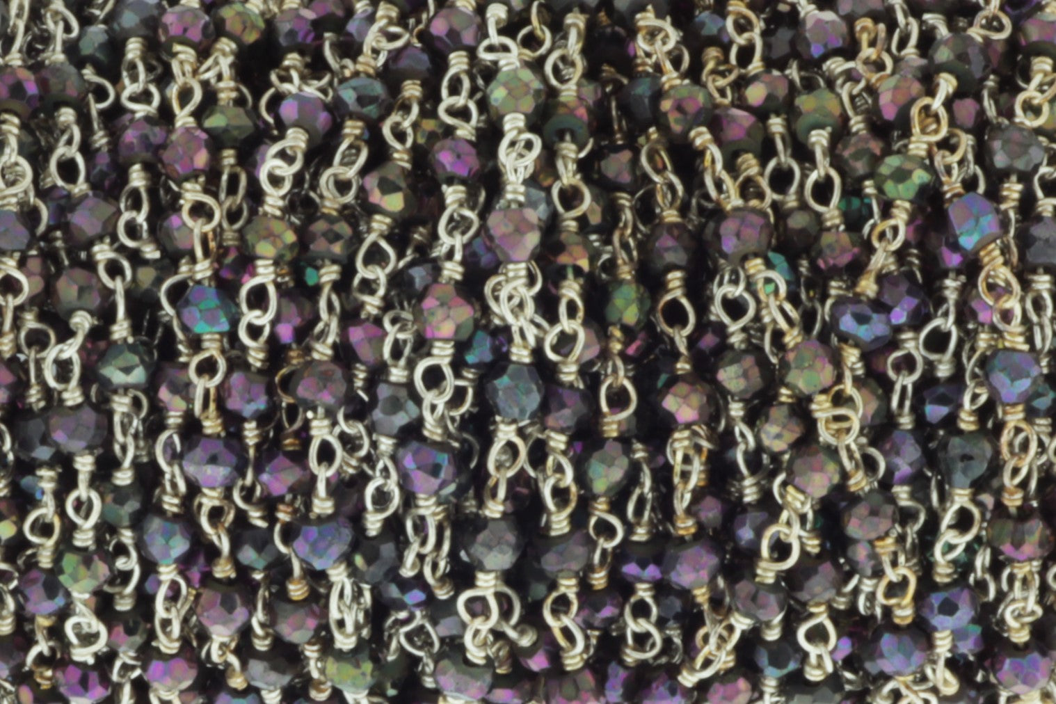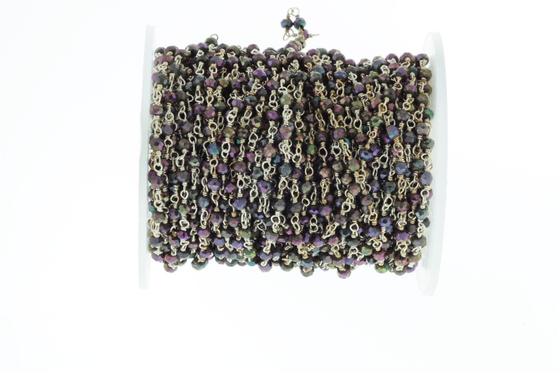 Purple Coated Black Spinel 3mm Faceted Rondelles Rosary Chain Sterling Silver Wire Wrap Chain by the Foot