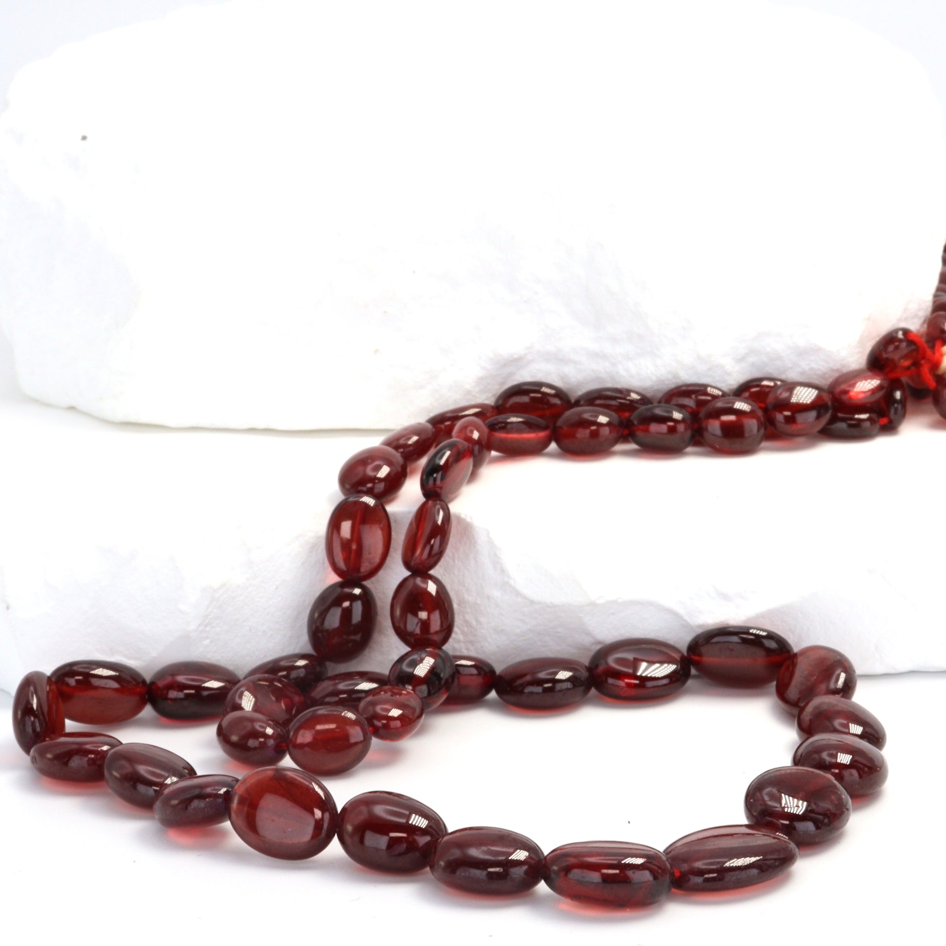 Red Garnet 6x4mm - 9x7mm Smooth Ovals Bead Strand