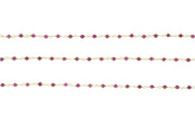 Red Ruby 2.5mm Faceted Rounds Rosary Chain Sterling Silver with Gold Plating Wire Wrap Chain by the Foot