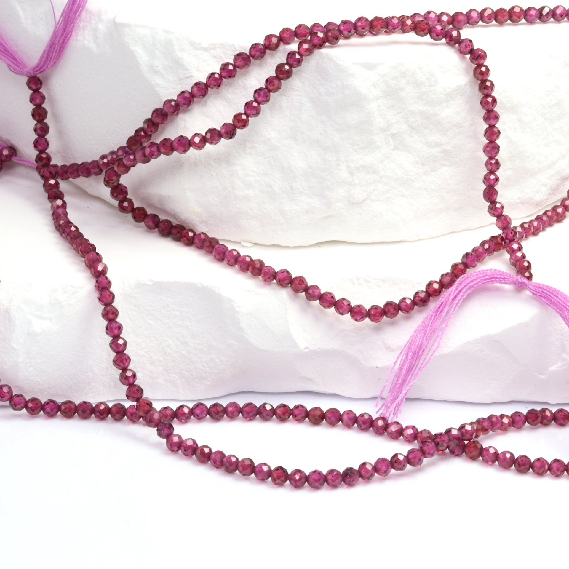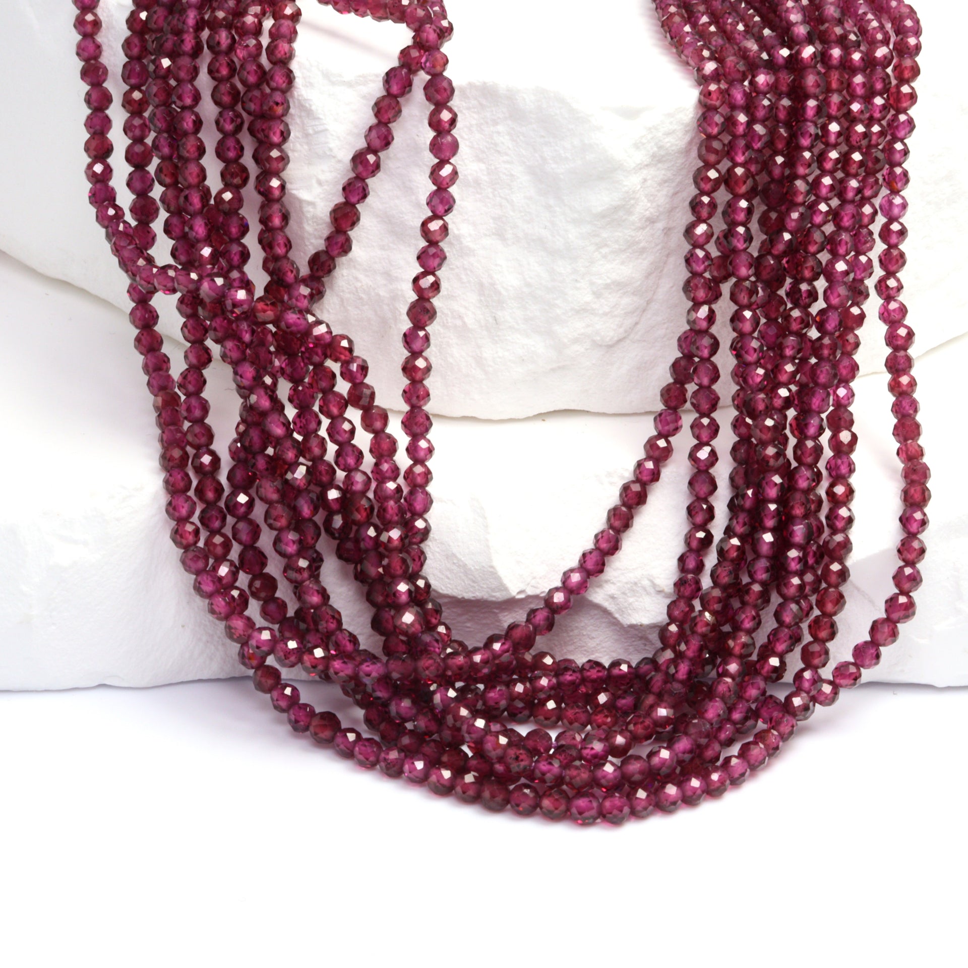 Discover the exquisite beauty of our 13" Full Bead Strand of Rhodolite Garnet Faceted Rounds. These 2.5mm beads are meticulously crafted to showcase the rich, raspberry-red hues of Rhodolite Garnet, a gemstone renowned for its captivating allure and durability. Ideal for creating stunning jewelry pieces, these beads offer a perfect blend of elegance and versatility. Each bead is faceted, enhancing its natural sparkle and making it a standout choice for any jewelry design. As a trusted gemstone wholesaler, we ensure that every bead in this strand is of the highest quality, promising a product that not only meets but exceeds your expectations. Elevate your jewelry designs with the timeless charm of our Rhodolite Garnet Faceted Rounds.