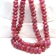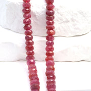 Discover the exquisite beauty of our 16" Full Bead Strand of Ruby Faceted Rondelles. Each 7mm bead is meticulously crafted, showcasing the rich, deep red hue that makes rubies a coveted gemstone. Ideal for jewelry designers and stores, these ruby beads add a touch of luxury and elegance to any piece. Their faceted rondelle shape enhances their sparkle, catching the light beautifully. As a trusted gemstone wholesaler, we ensure that every bead is of the highest quality, offering unmatched brilliance and durability. Incorporate these stunning ruby beads into your designs for a truly captivating and unique piece of jewelry.