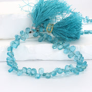 Sea Blue Apatite 7x4mm Smooth Pear Shaped Briolettes Bead Strand