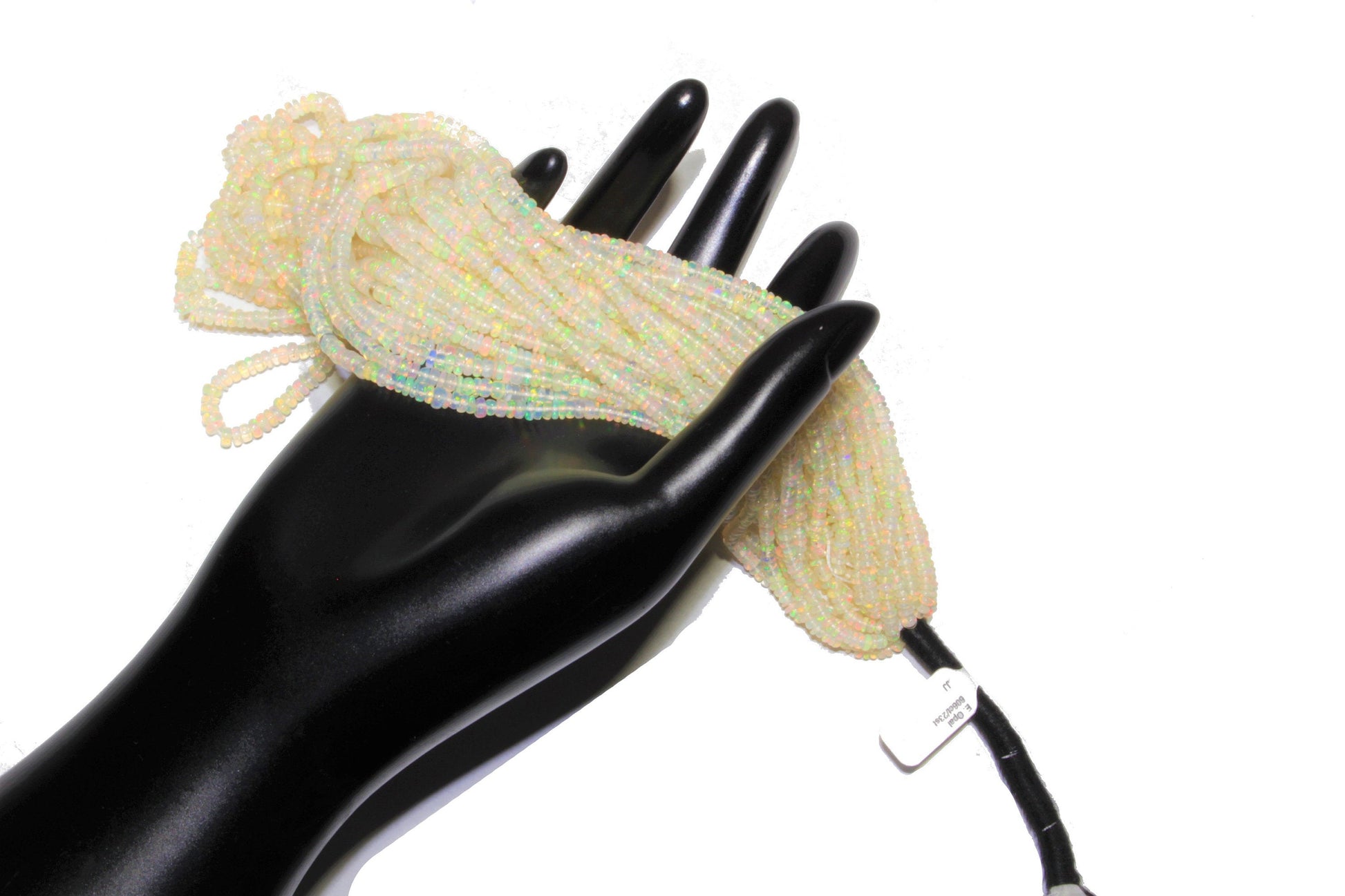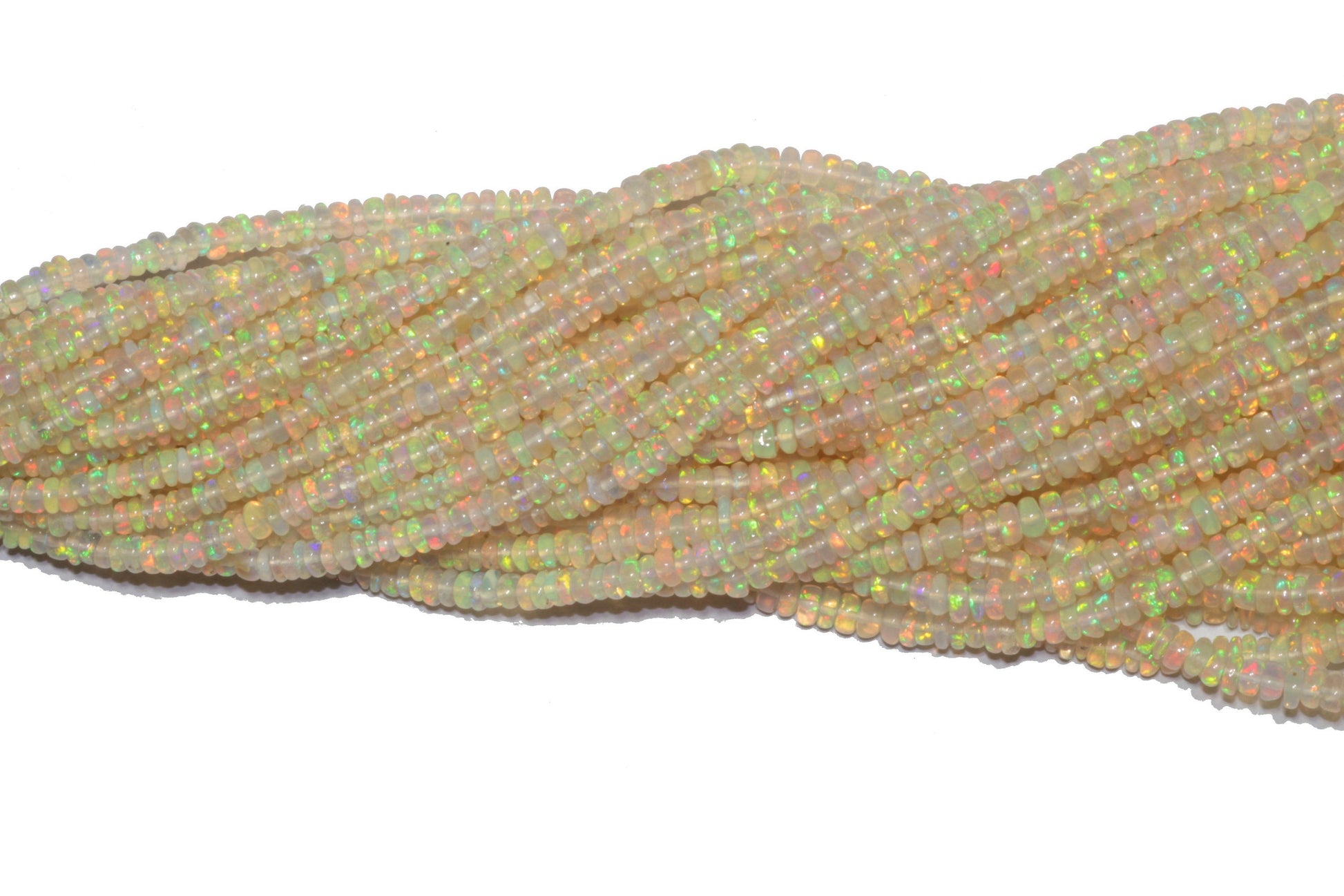 White Ethiopian Opal 3mm Smooth Rondelles Bead Strand
