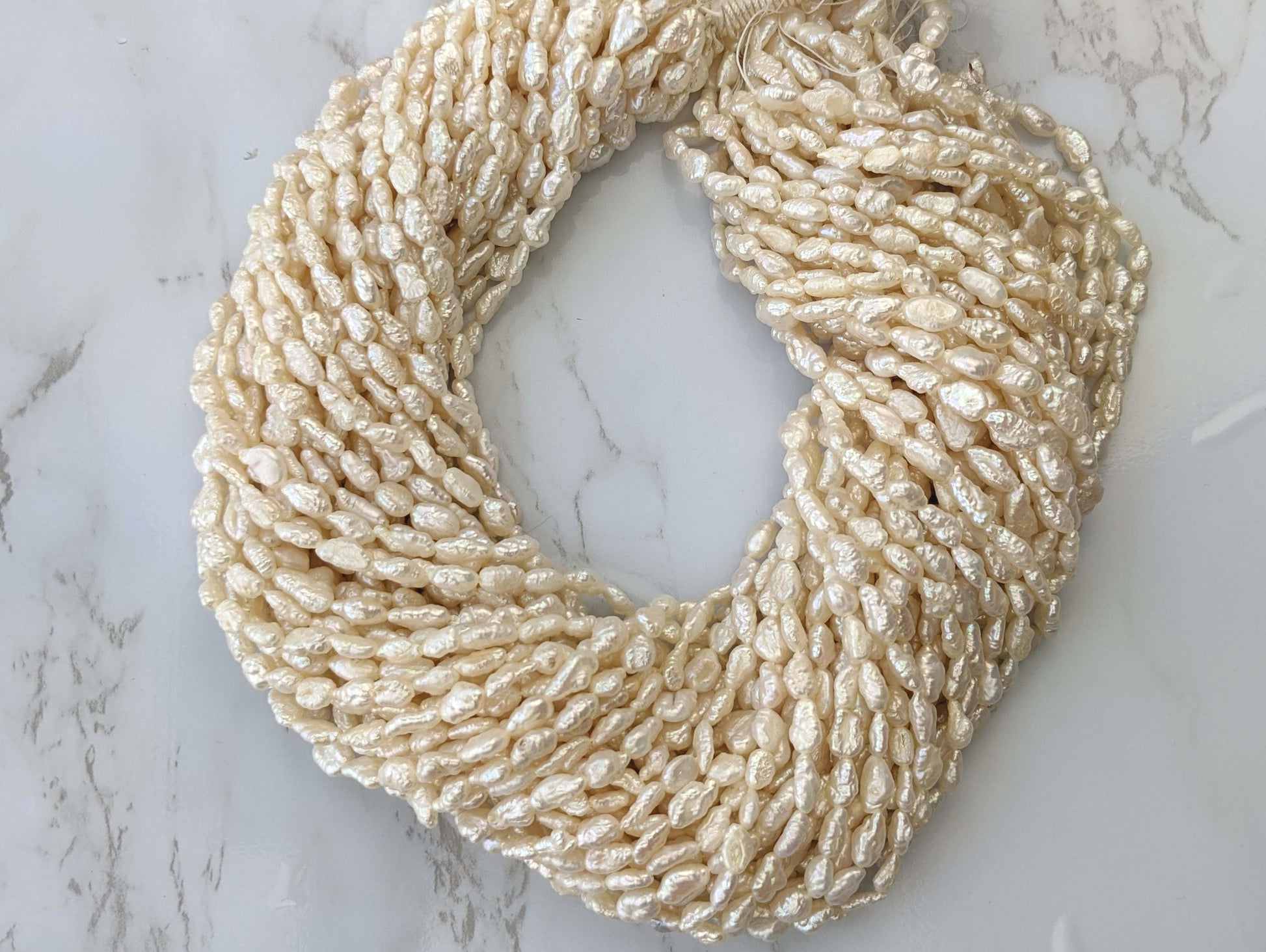 White Freshwater Pearl 7x3mm Biwa Sticks