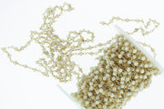 White Silverite 3mm Faceted Rondelles Rosary Chain Sterling Silver with Gold Plating Wire Wrap Chain by the Foot