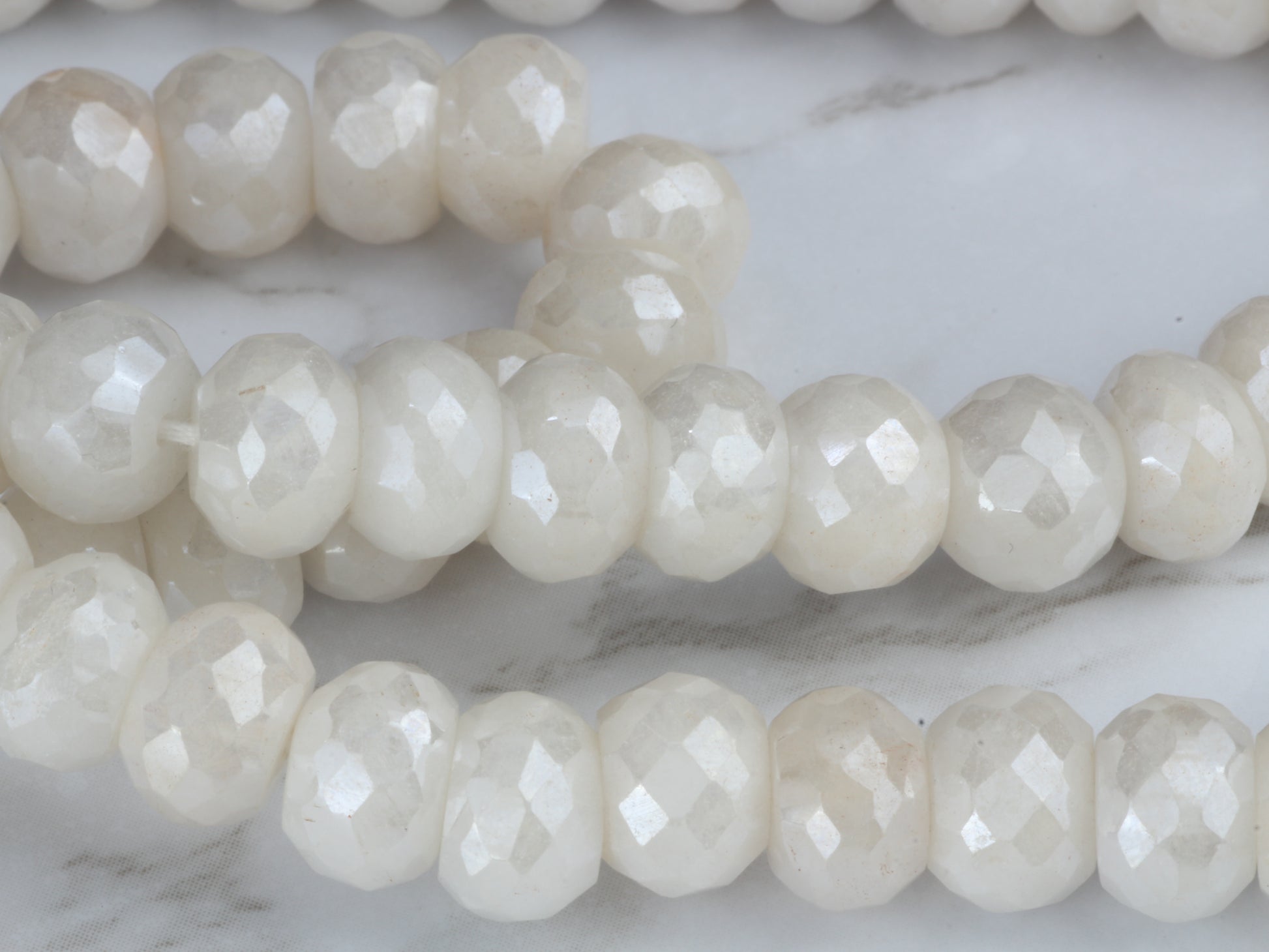 White Silverite 8mm Faceted Rondelles Bead Strand