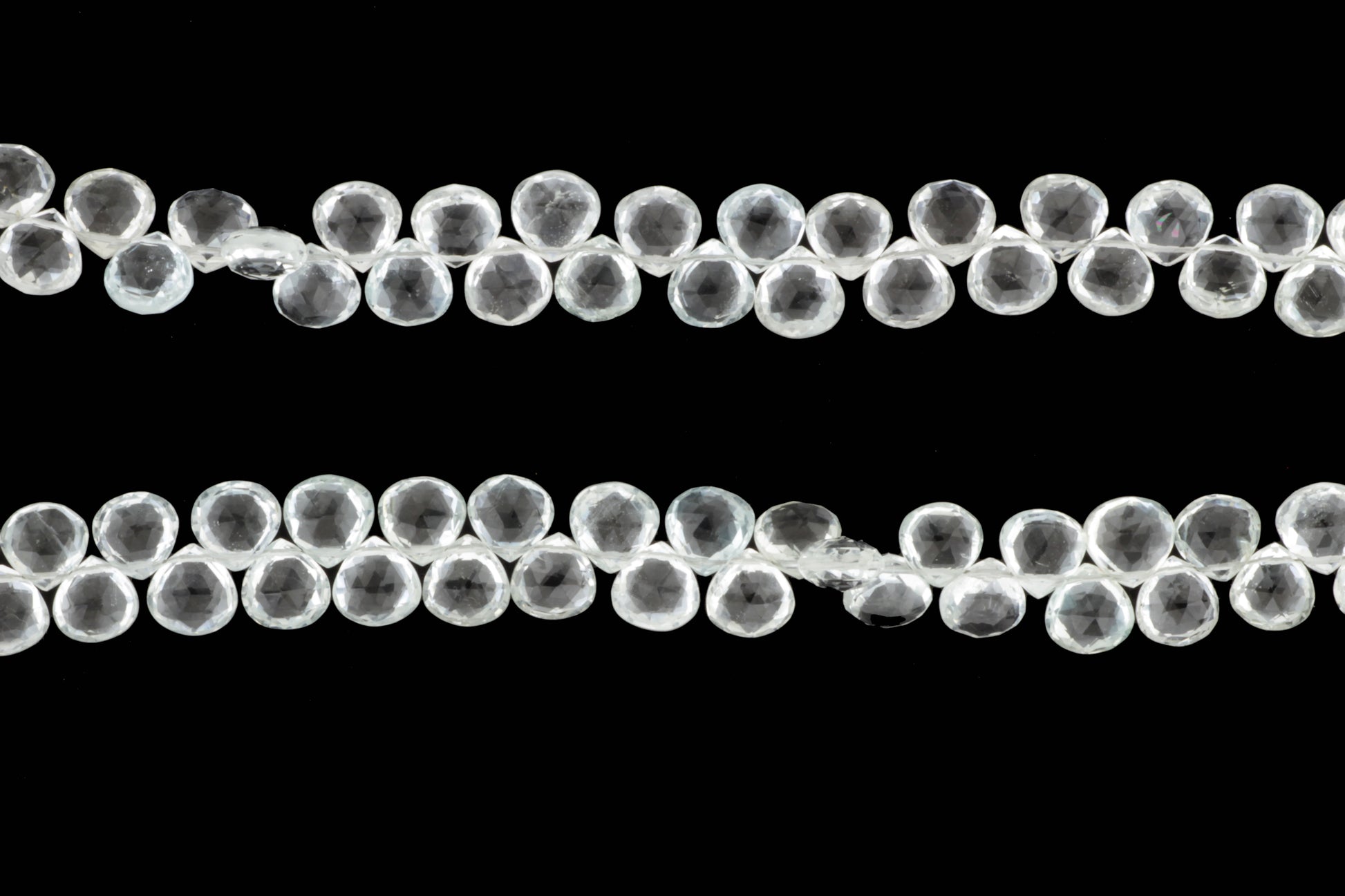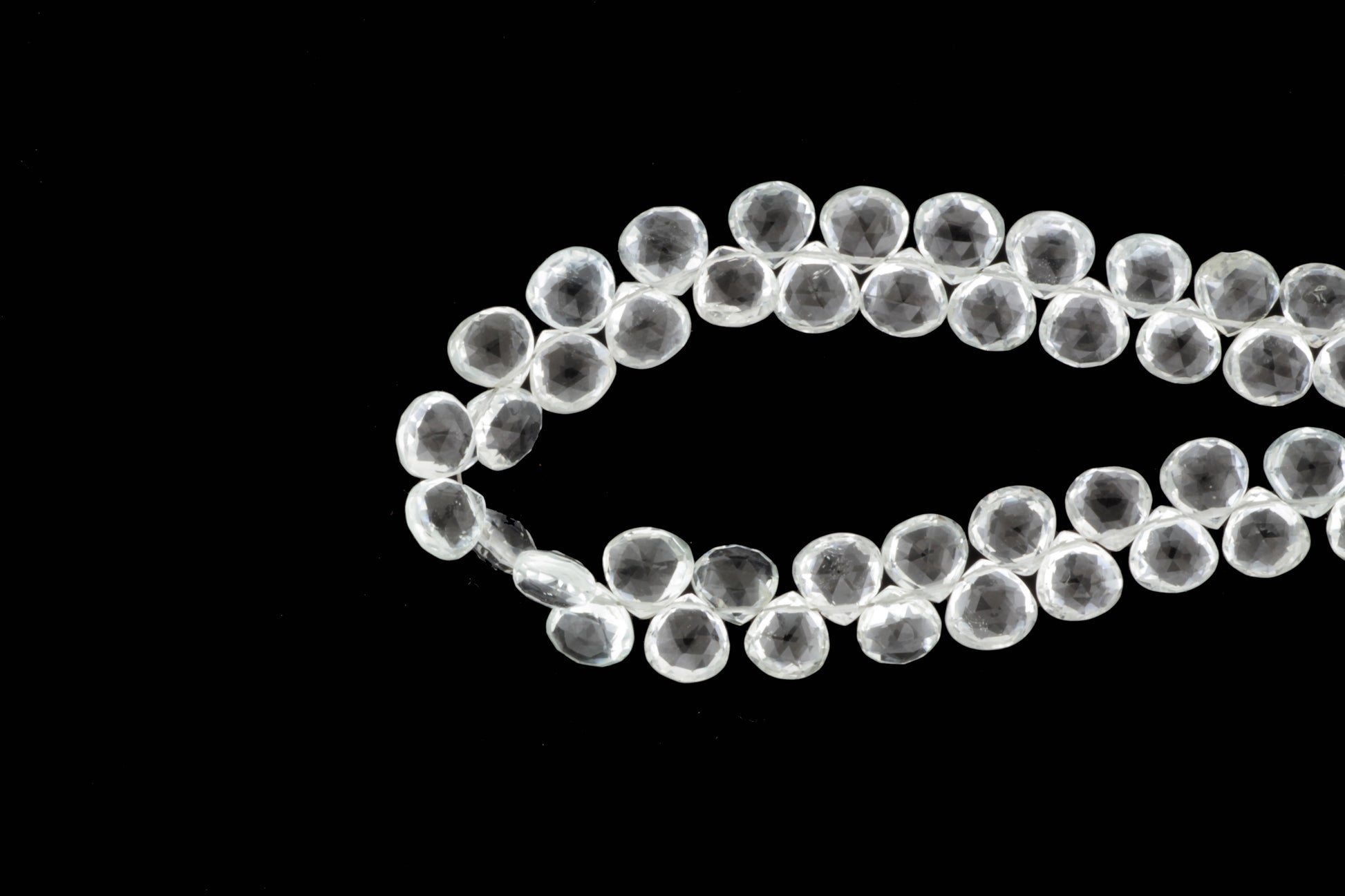 White Topaz 10mm Faceted Heart Shaped Briolettes Bead Strand