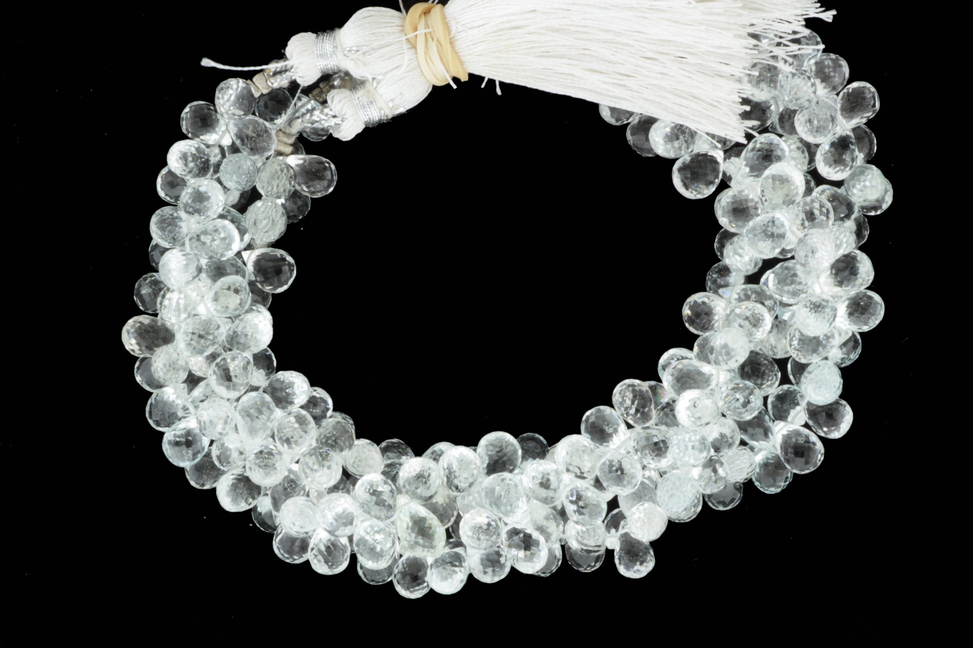 White Topaz 7x5mm Faceted Teardrop Briolettes Bead Strand