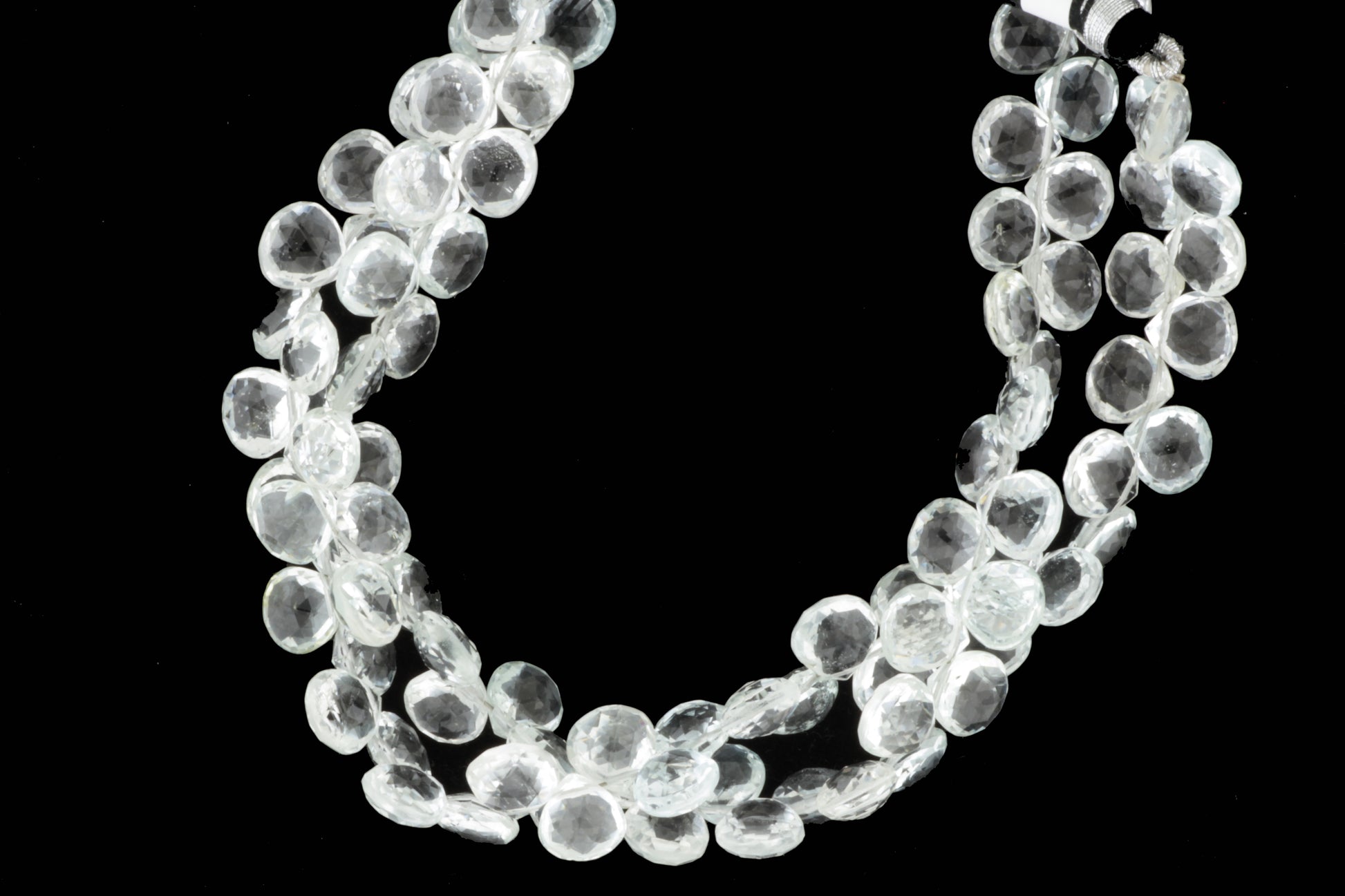 White Topaz 8mm Faceted Heart Shaped Briolettes Bead Strand