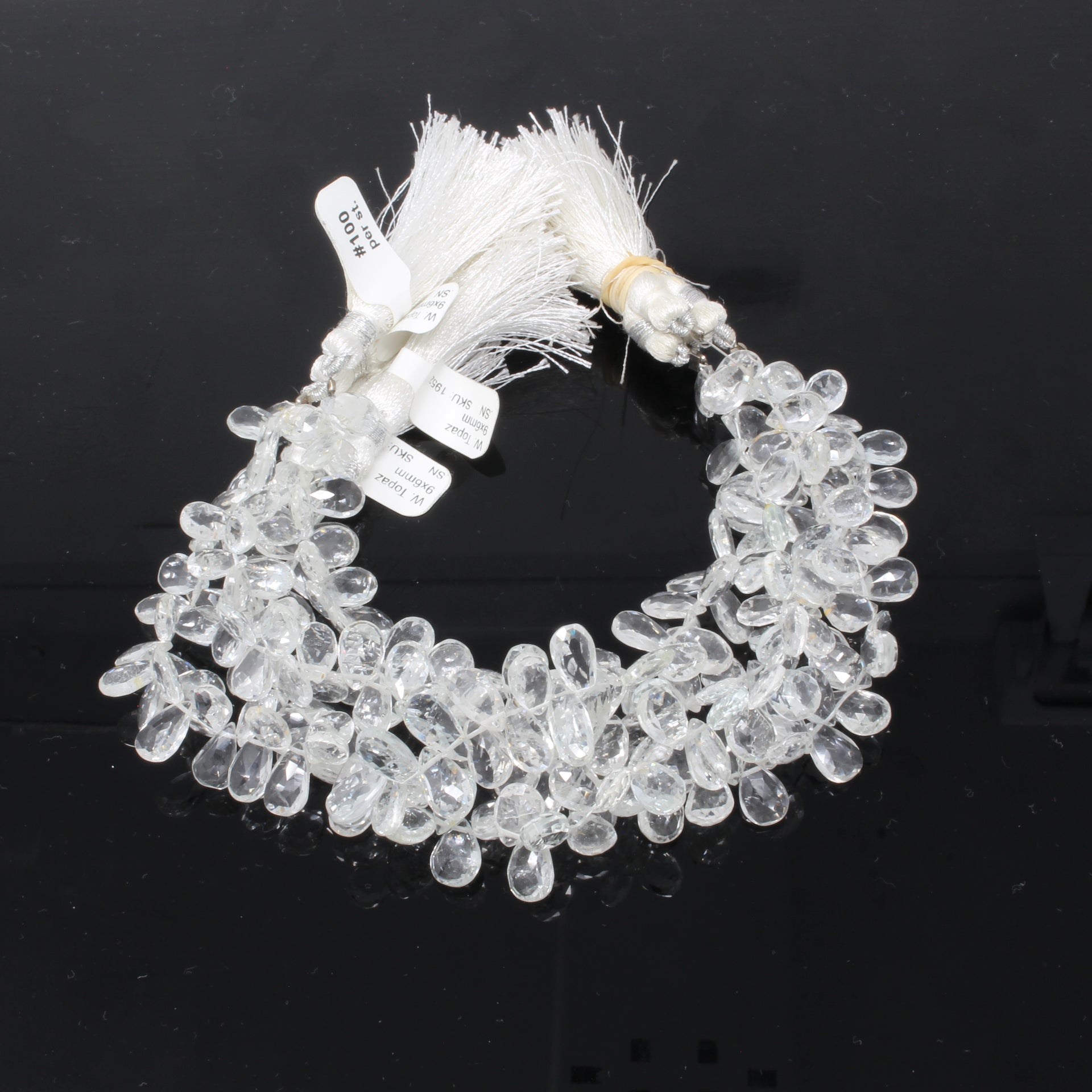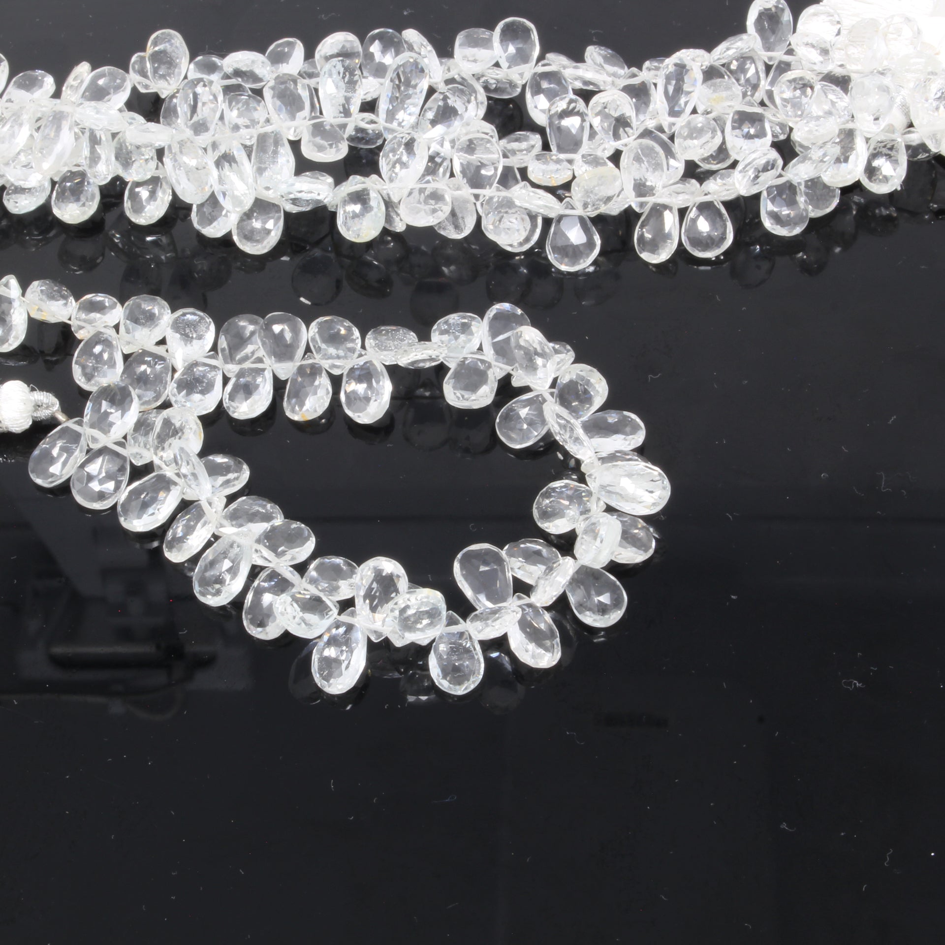 White Topaz 9x7mm Faceted Pear Shaped Briolettes Bead Strand
