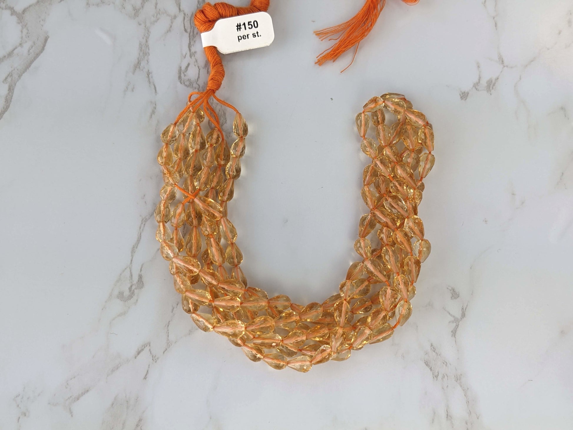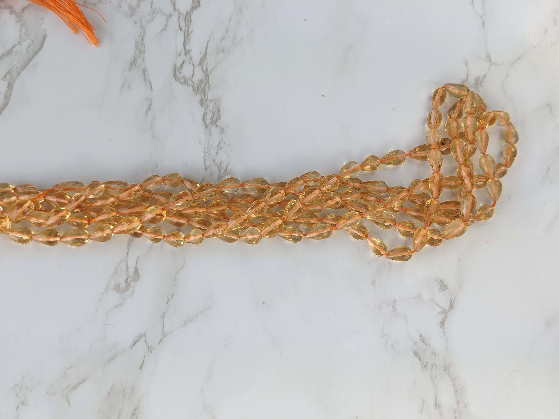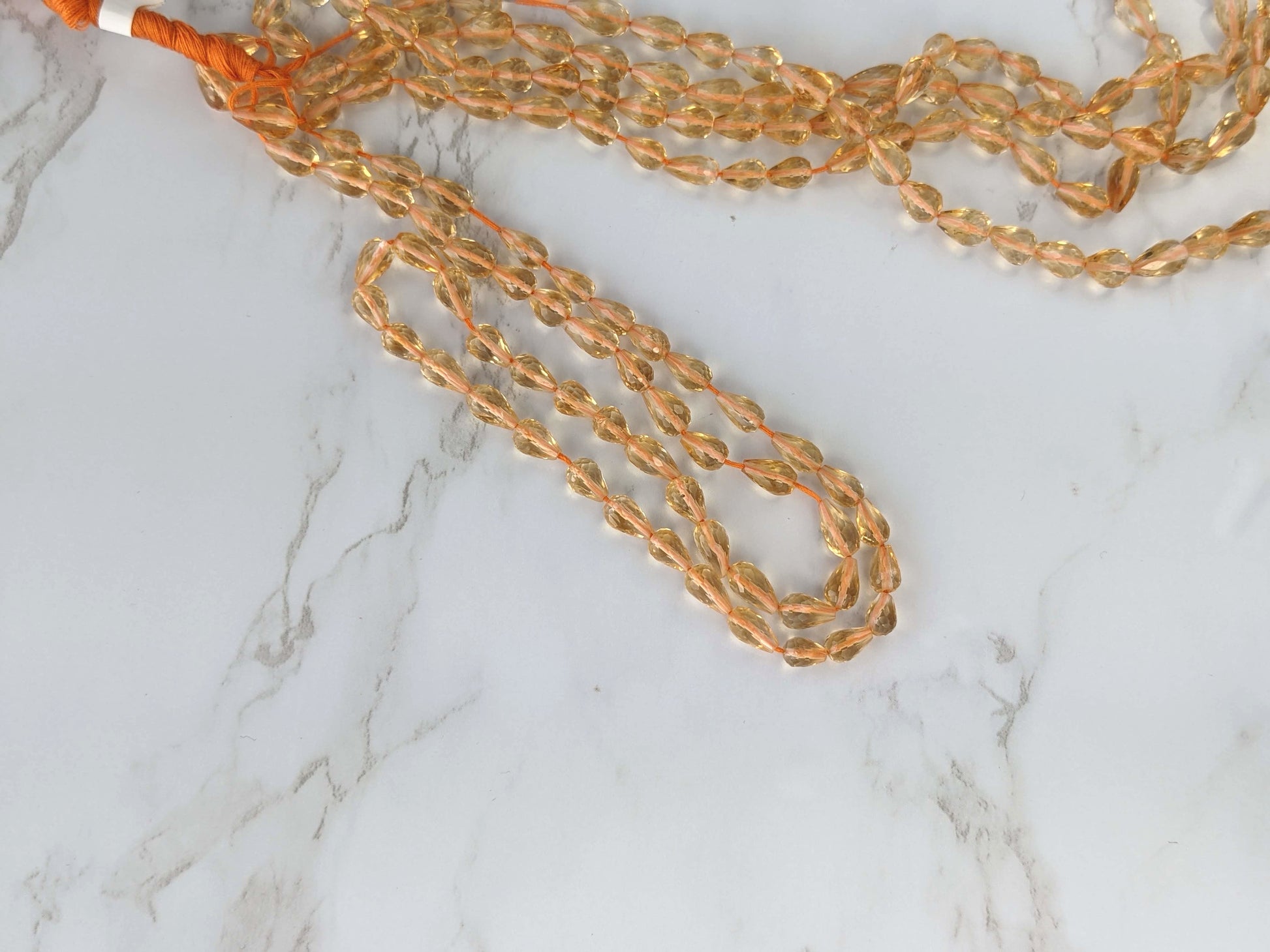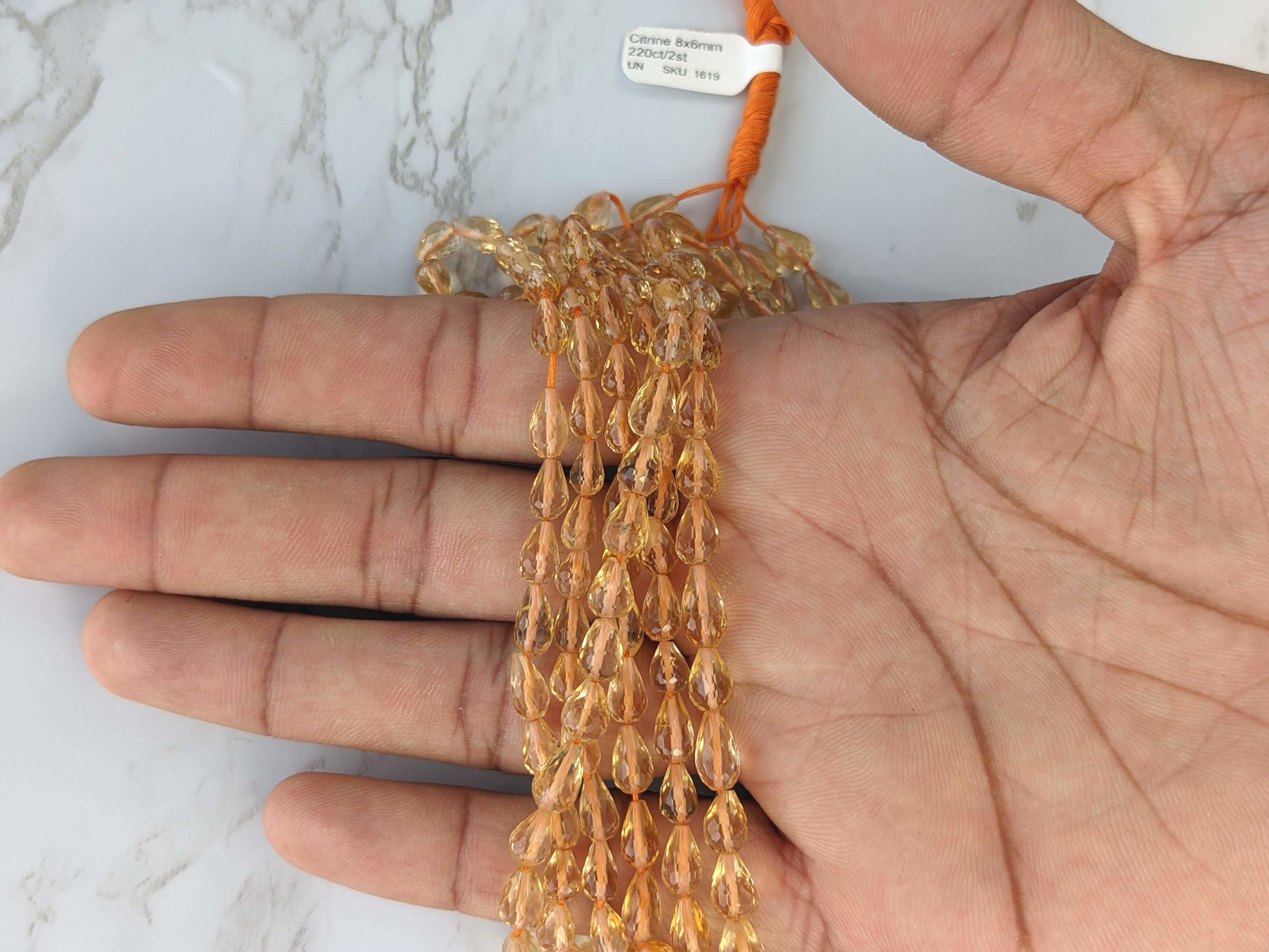 Yellow Citrine 8x6mm Center Drilled Teardrops Bead Strand