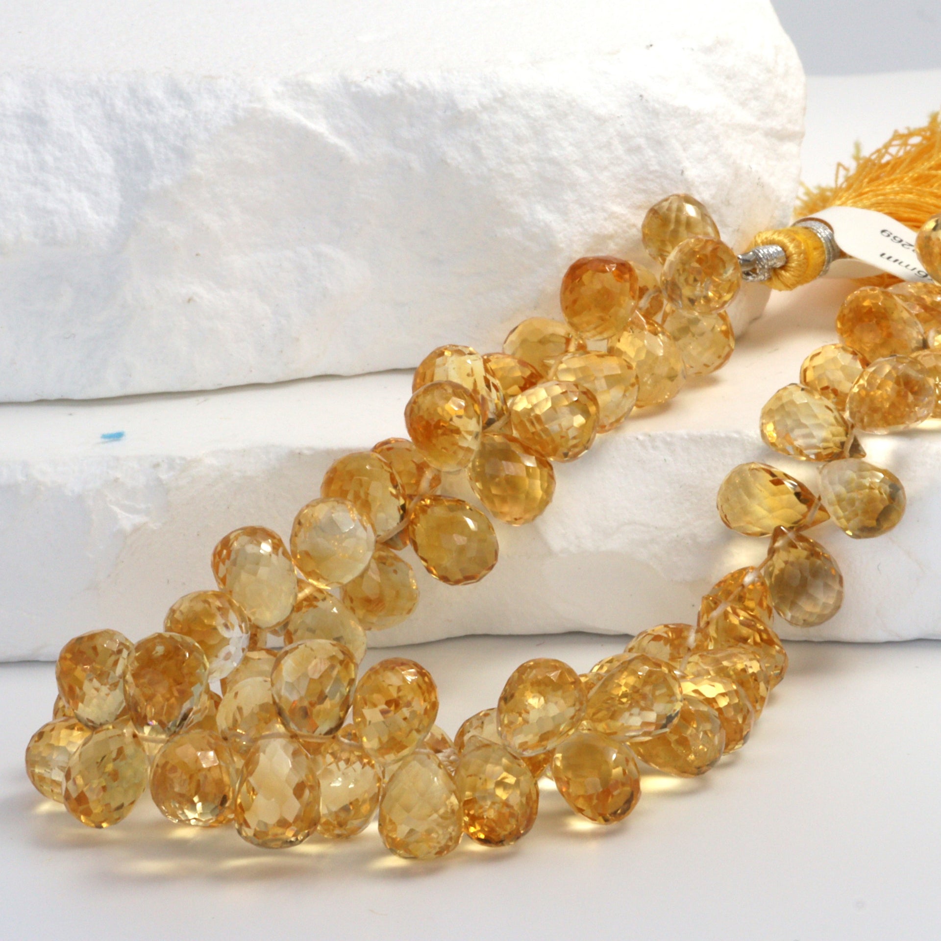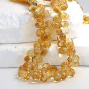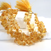 Yellow Citrine 9x6mm Faceted Teardrop Briolettes Bead Strand