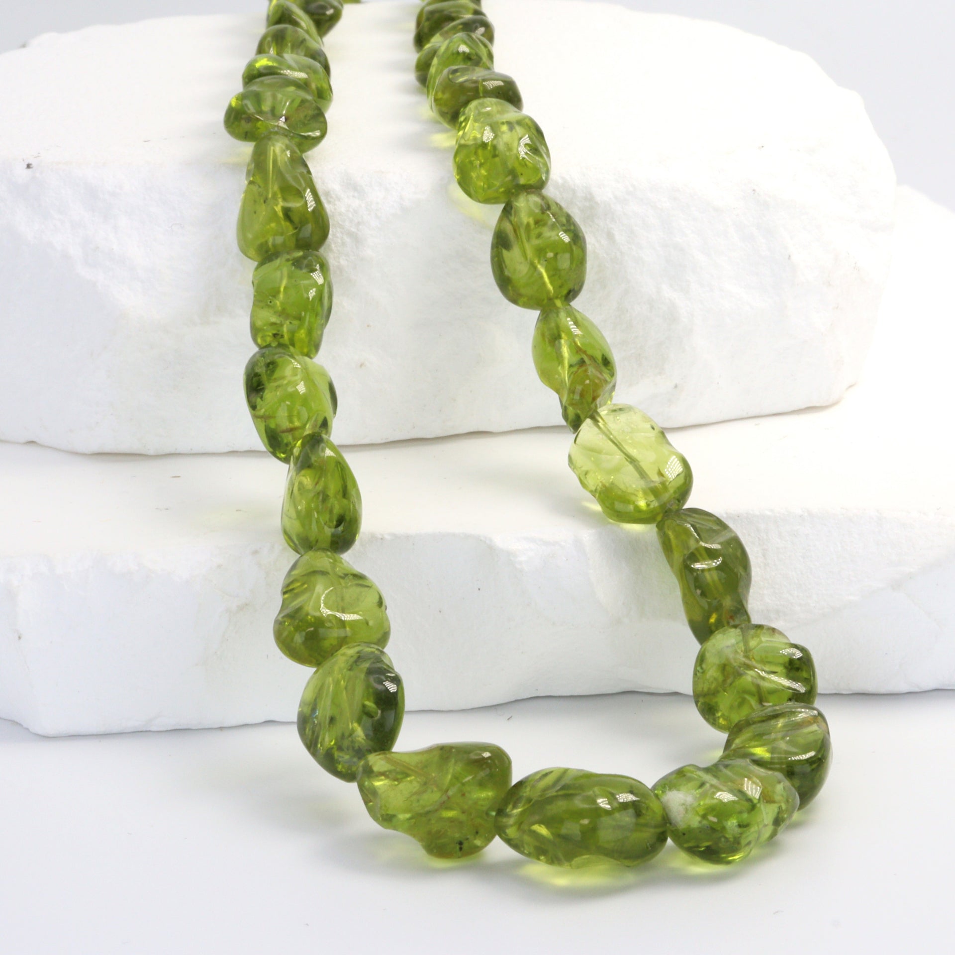 Green Peridot 10x8mm - 14x12mm Smooth Nuggets Bead Strand