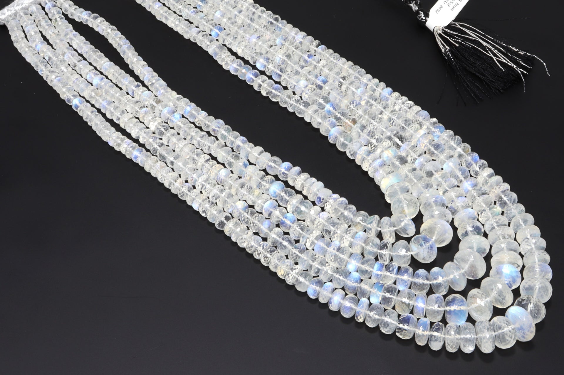 AAA Blue Rainbow Moonstone 5mm-9mm Faceted Rondelles 7 Strand Bead Necklace