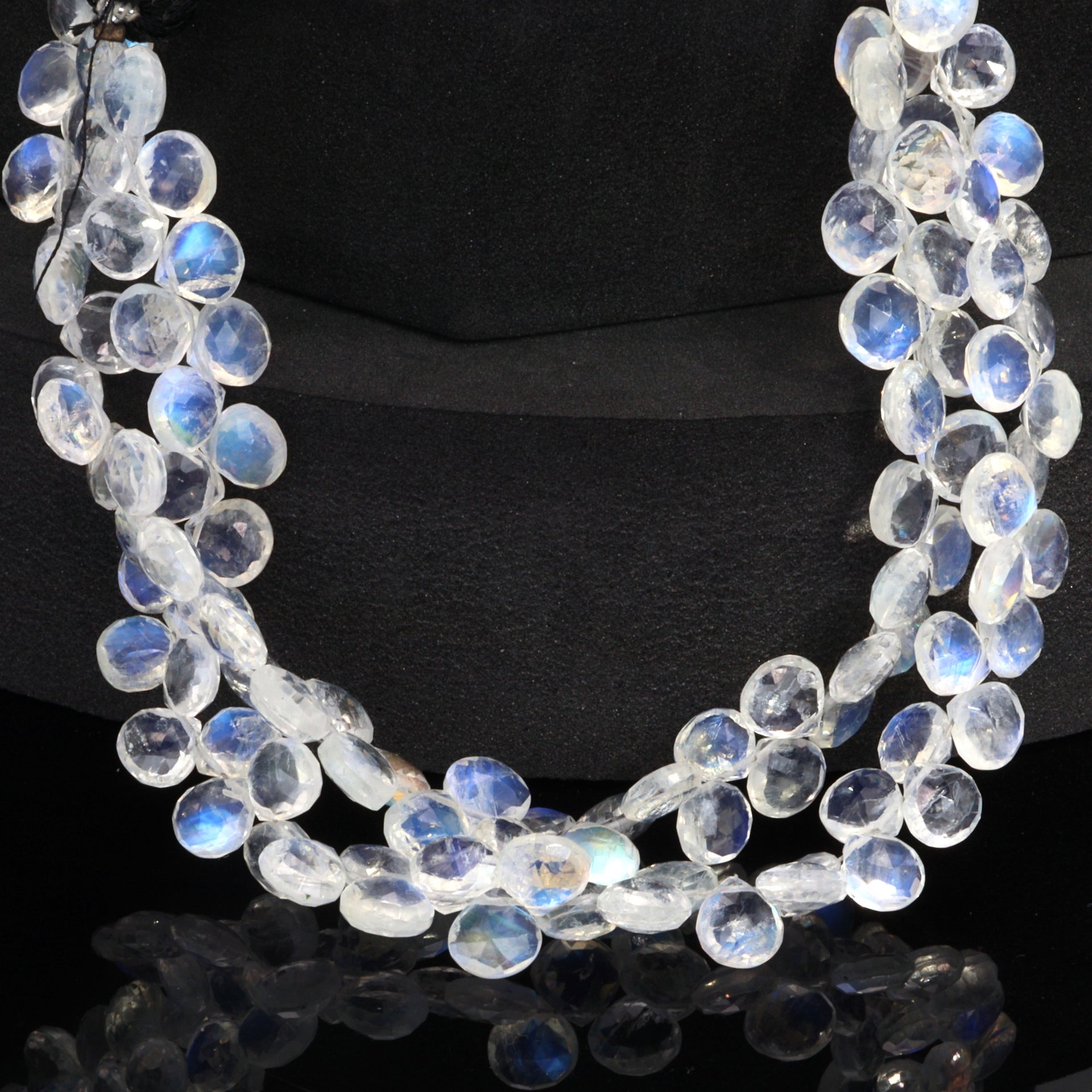 AAA Blue Rainbow Moonstone 7mm Faceted Heart Shaped Briolettes Bead Strand