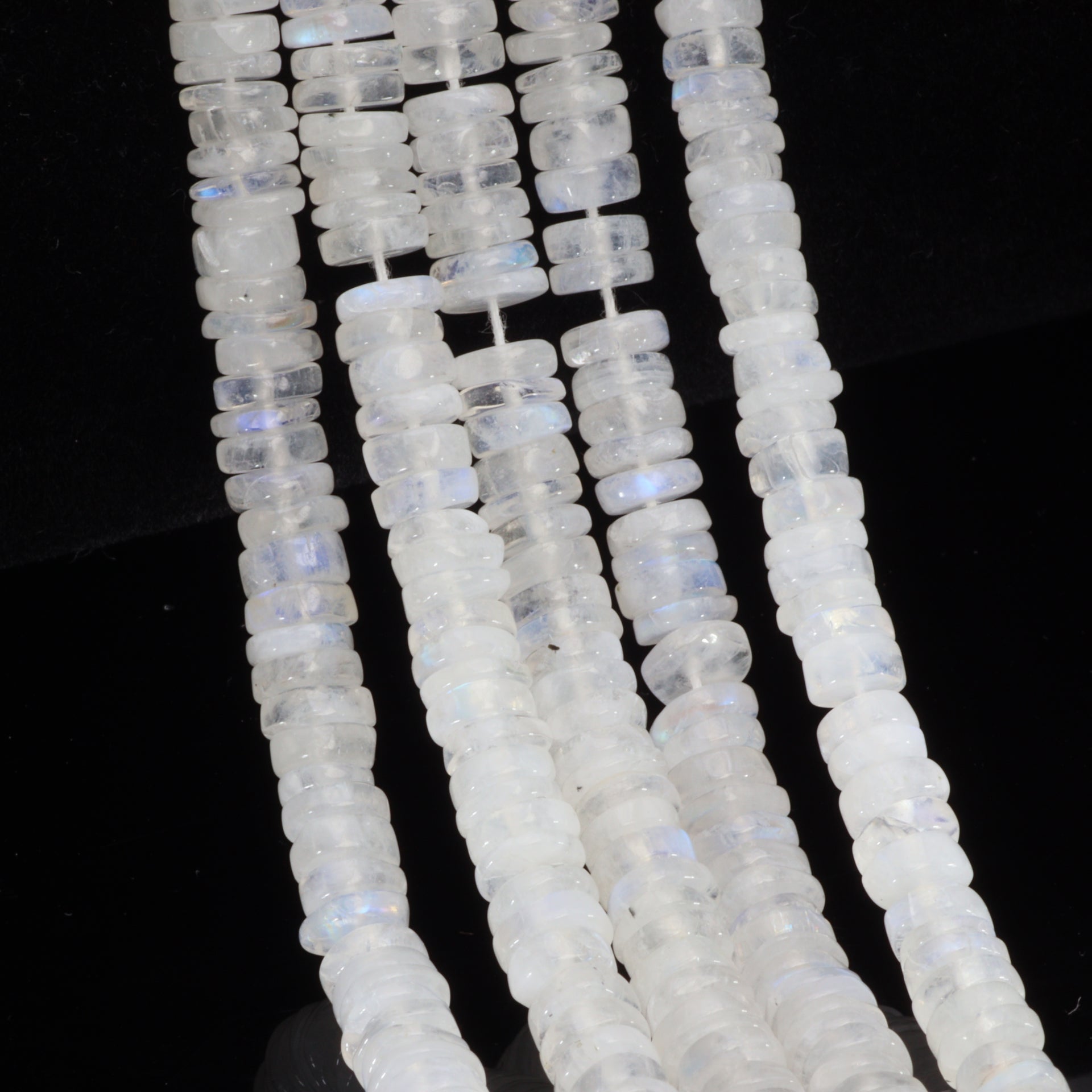Blue Rainbow Moonstone 5mm Smooth Tires Bead Strand