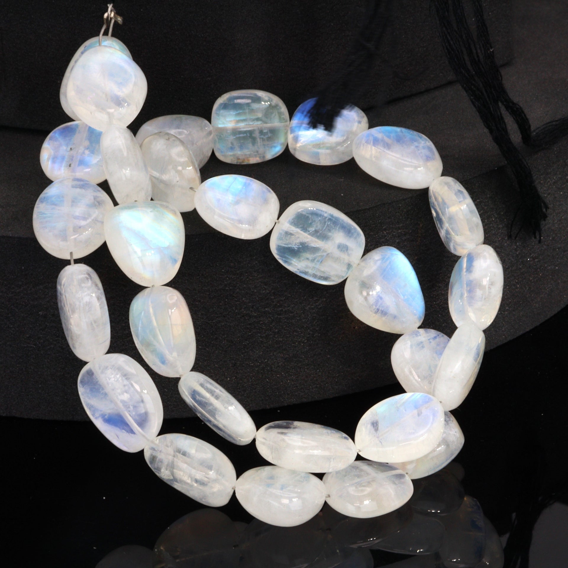 Blue Rainbow Moonstone 9x7mm - 16x12mm Smooth Nuggets Bead Strand