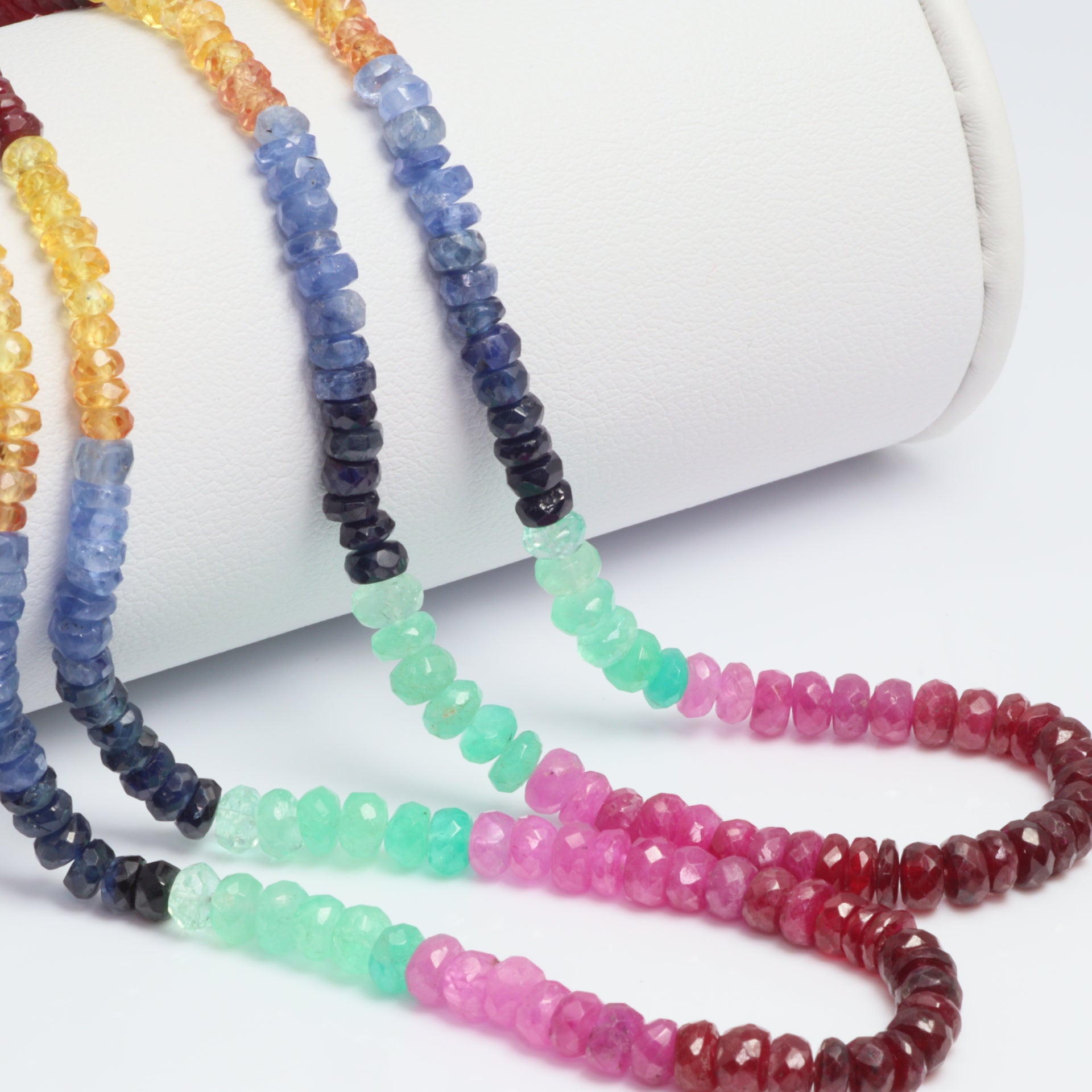 Rainbow Multi Ruby, Emerald, and Sapphire 2.5mm – 3.5mm Hand Faceted Rondelles Bead Strand