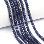 Deep Navy Blue Sapphire 3.5mm - 4.0mm Hand Faceted Rondelles Bead Strand