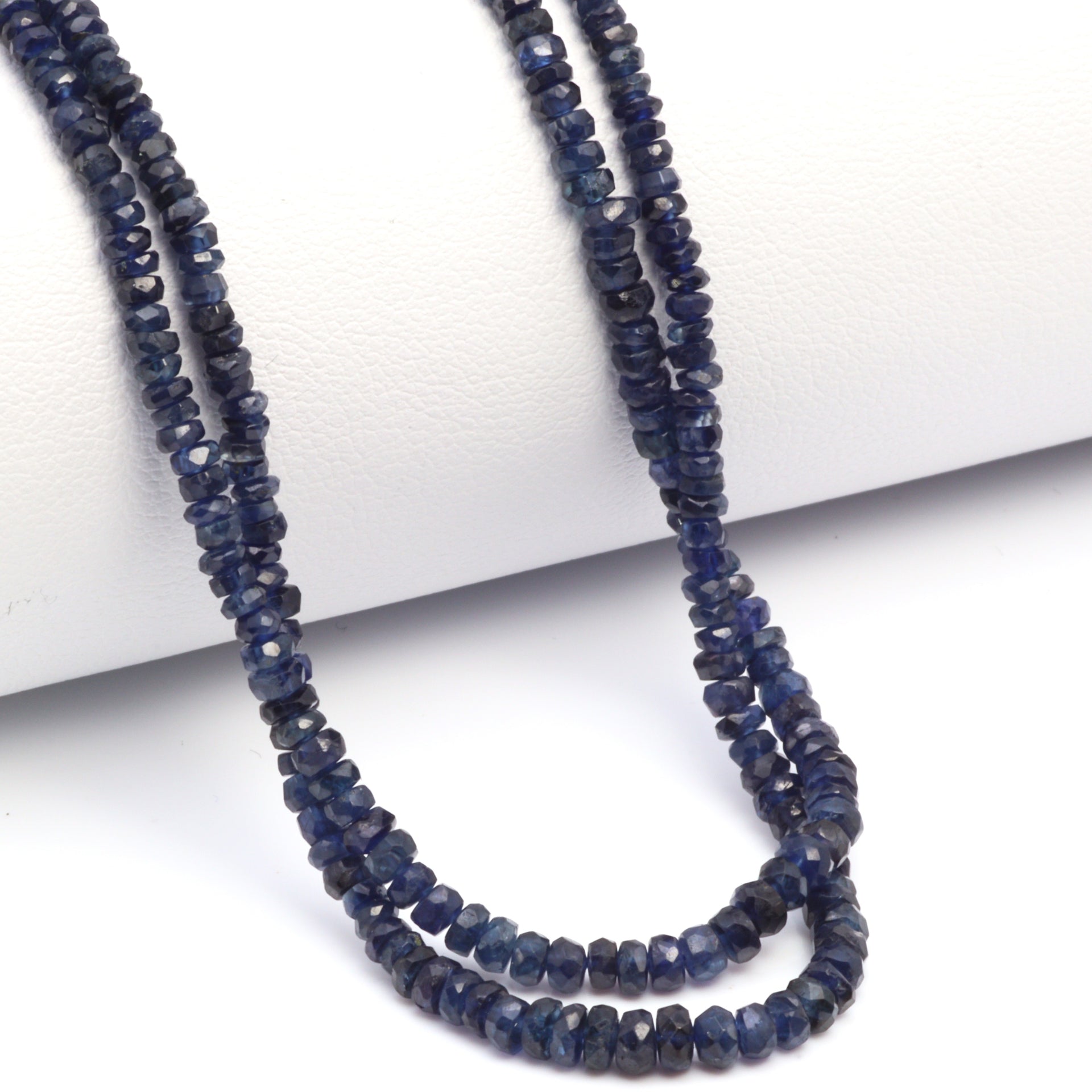 Discover the exquisite beauty of our 16" Full Bead Strand of Navy Blue Sapphire Faceted Rondelles. These 2.5mm beads are meticulously crafted to showcase the deep, rich hues of navy blue sapphire, a gemstone renowned for its elegance and durability. Ideal for jewelry designers and stores, these gemstone beads add a touch of sophistication to any jewelry piece. Each bead is faceted, reflecting light in a way that enhances the sapphire's natural brilliance and depth of color. As a trusted gemstone wholesaler, we ensure that every bead strand we supply is of the highest quality, promising a stunning addition to your jewelry collection.