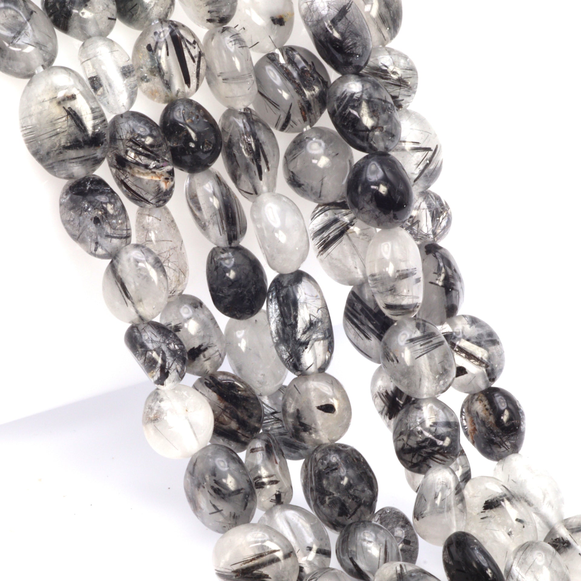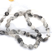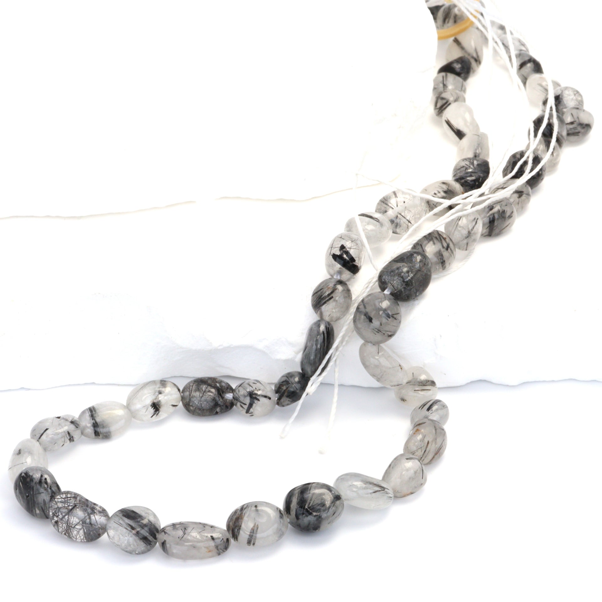 Black Tourmalinated Quartz 8x6mm Smooth Nuggets Bead Strand
