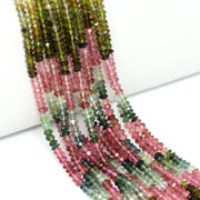 Watermelon Tourmaline 3.5mm Hand Faceted Rondelles Bead Strand