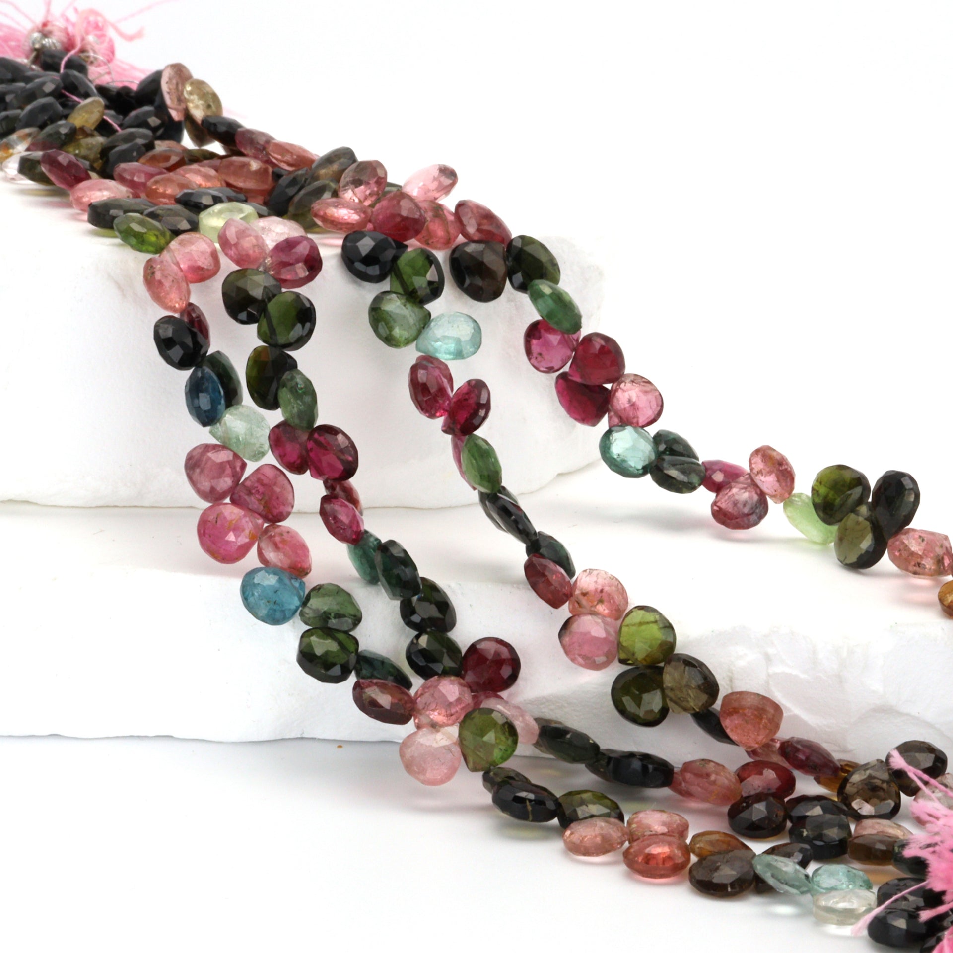 Watermelon Tourmaline 6mm Faceted Heart Shaped Briolettes Bead Strand
