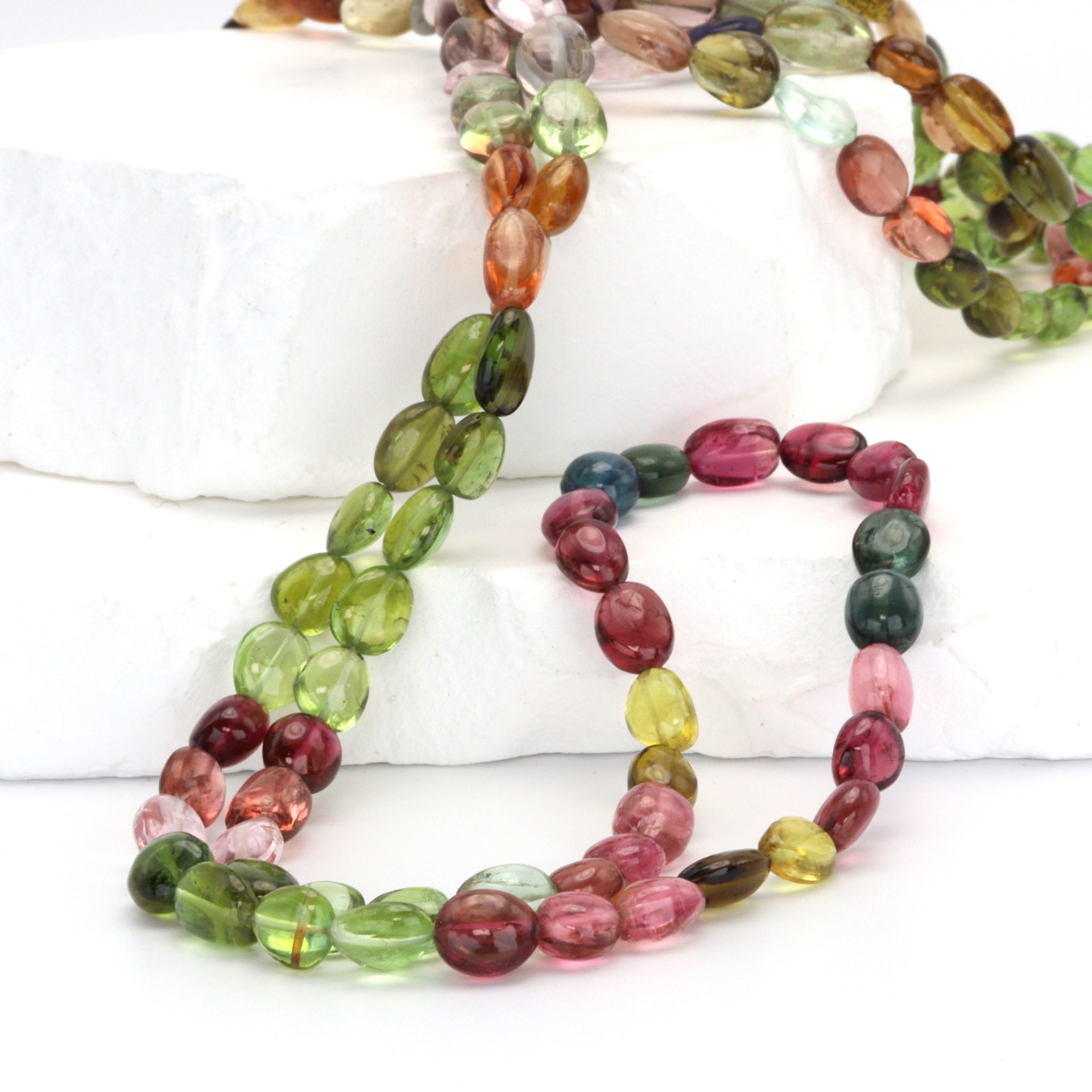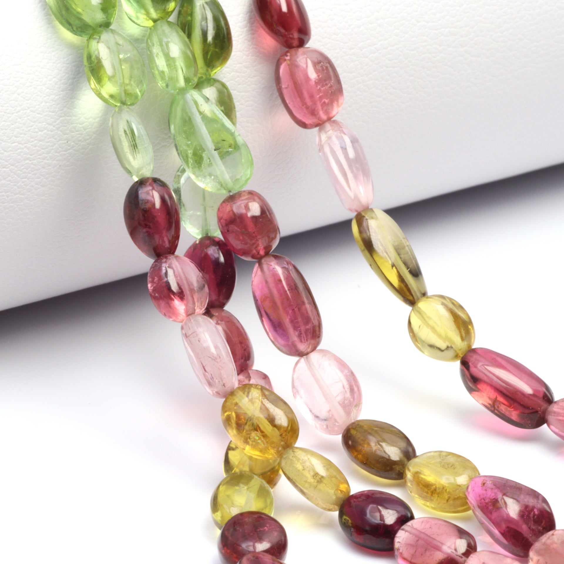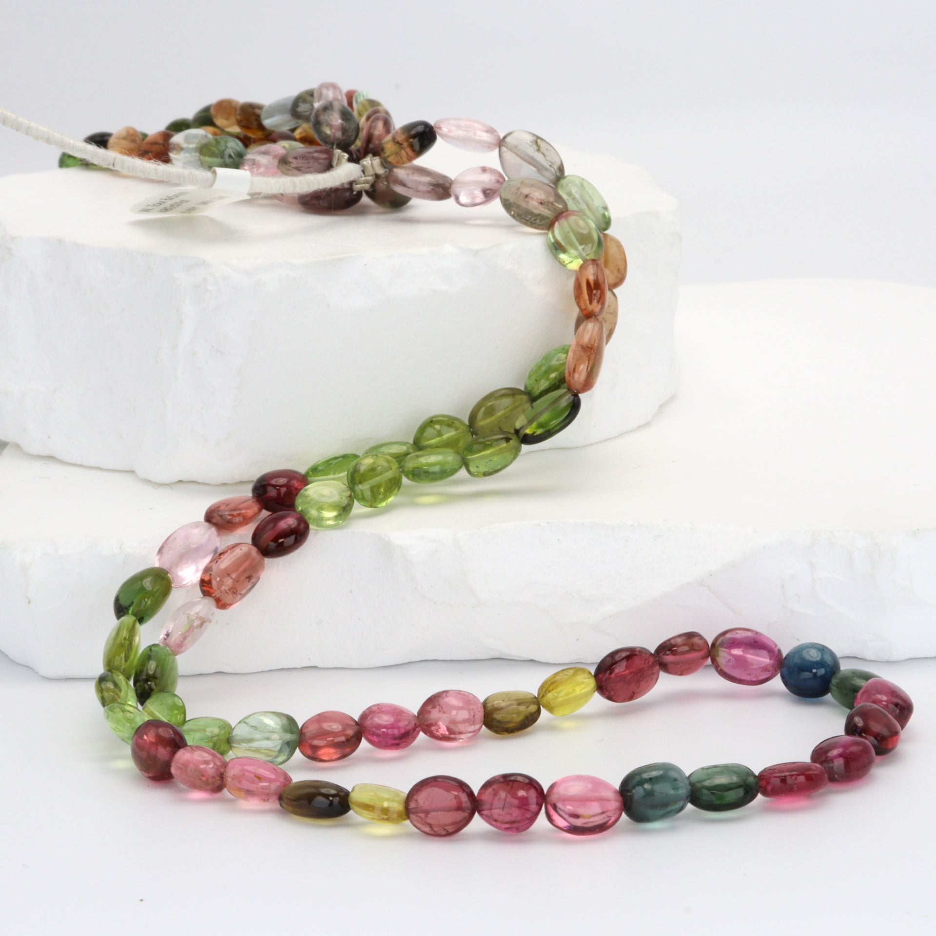 Watermelon Tourmaline 8x5mm - 9x6mm Smooth Ovals Bead Strand