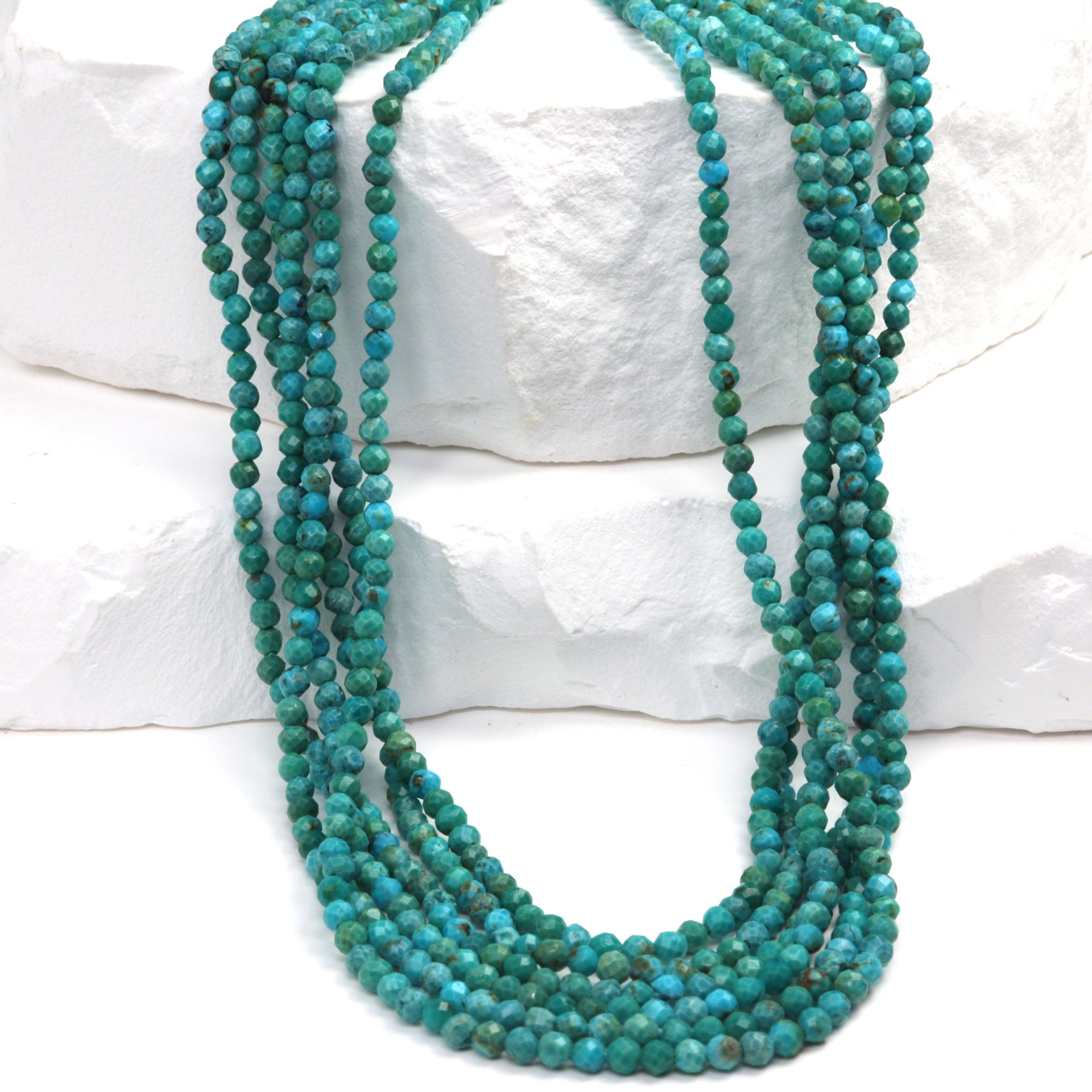 Natural Blue-Green Turquoise 2mm Faceted Rounds Bead Strand