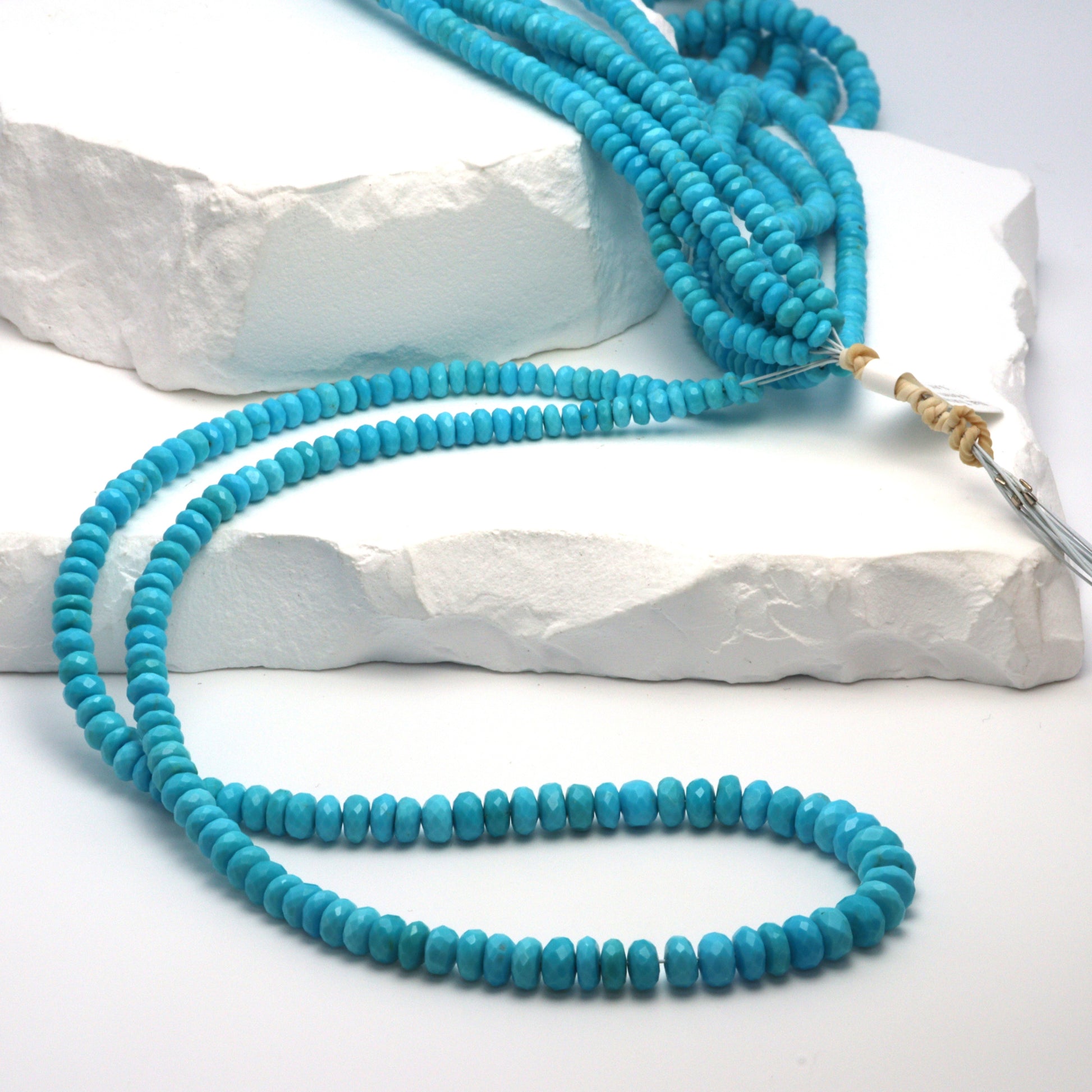 Natural Blue Turquoise 4mm - 6mm Hand Faceted Rondelles Bead Strand
