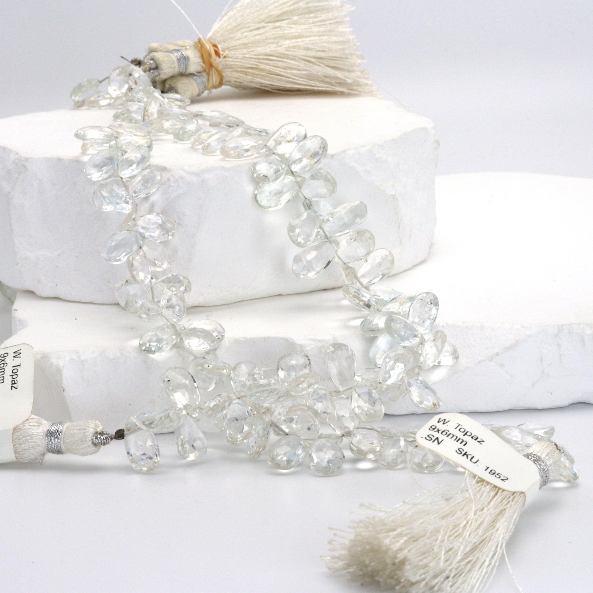 White Topaz 9x6mm Faceted Pear Shaped Briolettes Bead Strand